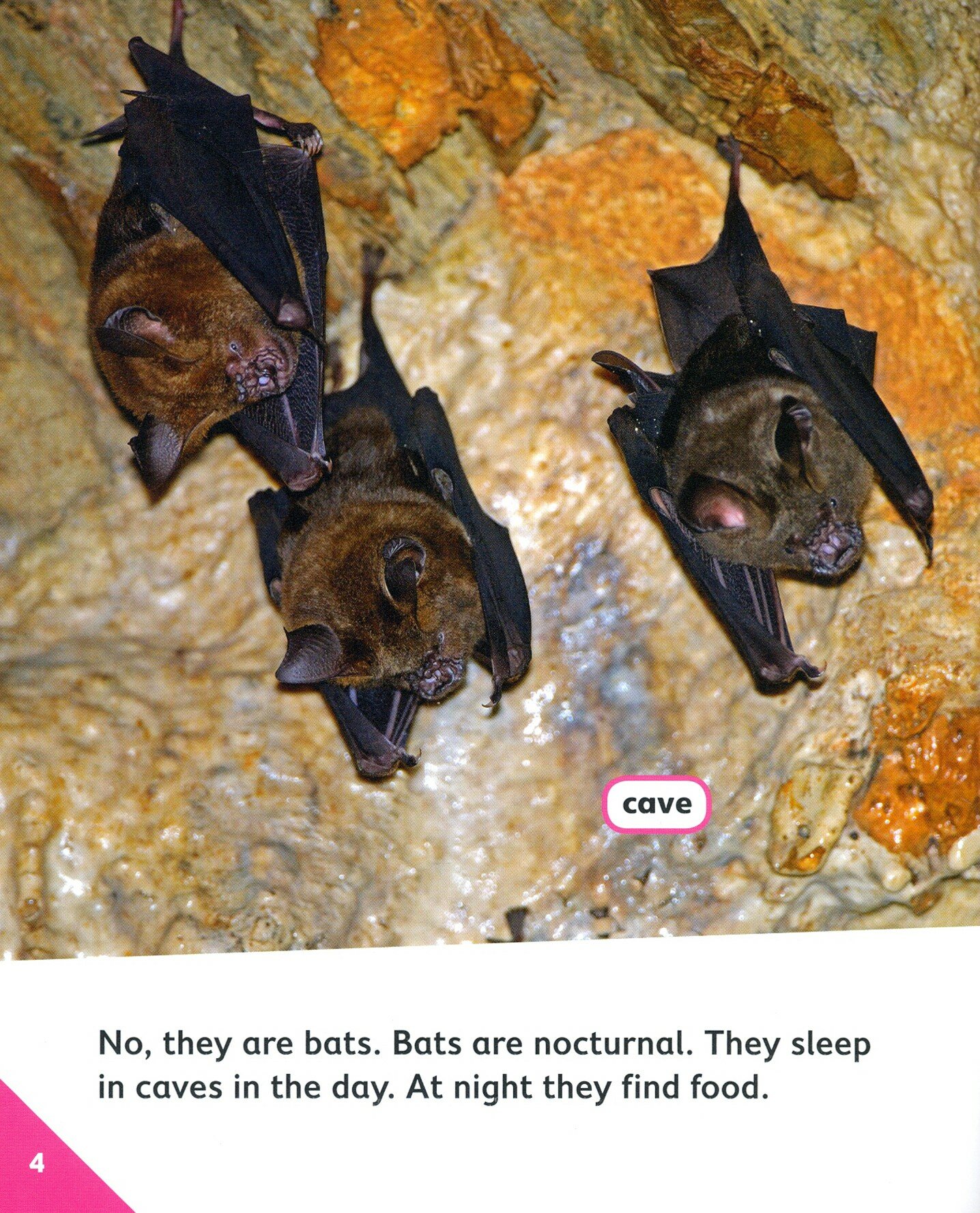 Amy and Jack are on vacation. They are visiting Max. It is dark. They cannot sleep. Suddenly, Amy points. "Look!" she says. "What are they?" Bats, birds, butterflies, moths...? Learn about animals of the night!