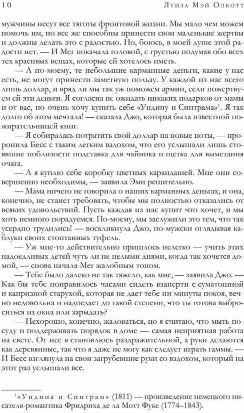 Героини искренних и трогательных романов сообща справляются с трудностями, испытывают горести и радости, мечтают о будущем и проходят непростой путь взросления. Став взрослыми девушками, они сталкиваются с новыми заботами. Живо и увлекательно описывая их судьбу, Олкотт вселяет веру в людей и человеческие чувства и показывает, что добро способно творить чудеса.