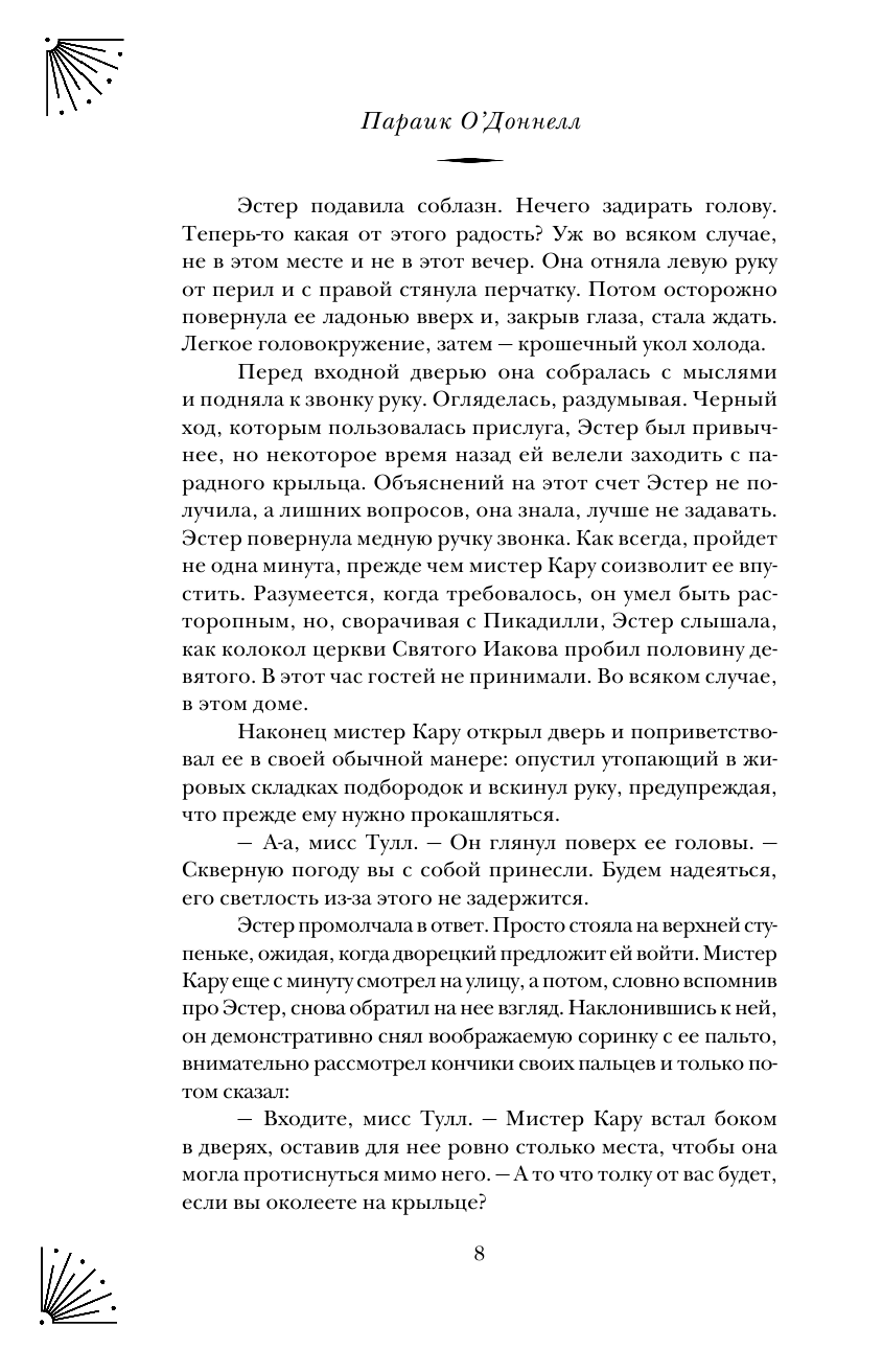 На самом деле больше всего это похоже на Уилки Коллинза – неплохой таинственный роман, вскрывающий (уже нет) некоторые проблемы описываемого периода (конец викторианской эпохи, кто бы сомневался). Мне он скорее понравился и сюжетом я была захвачена, хотя и порицаю написание О'Доннеллом последней главы: в таком виде она точно выглядит вымученной. Ну и название немного за уши притянуто.