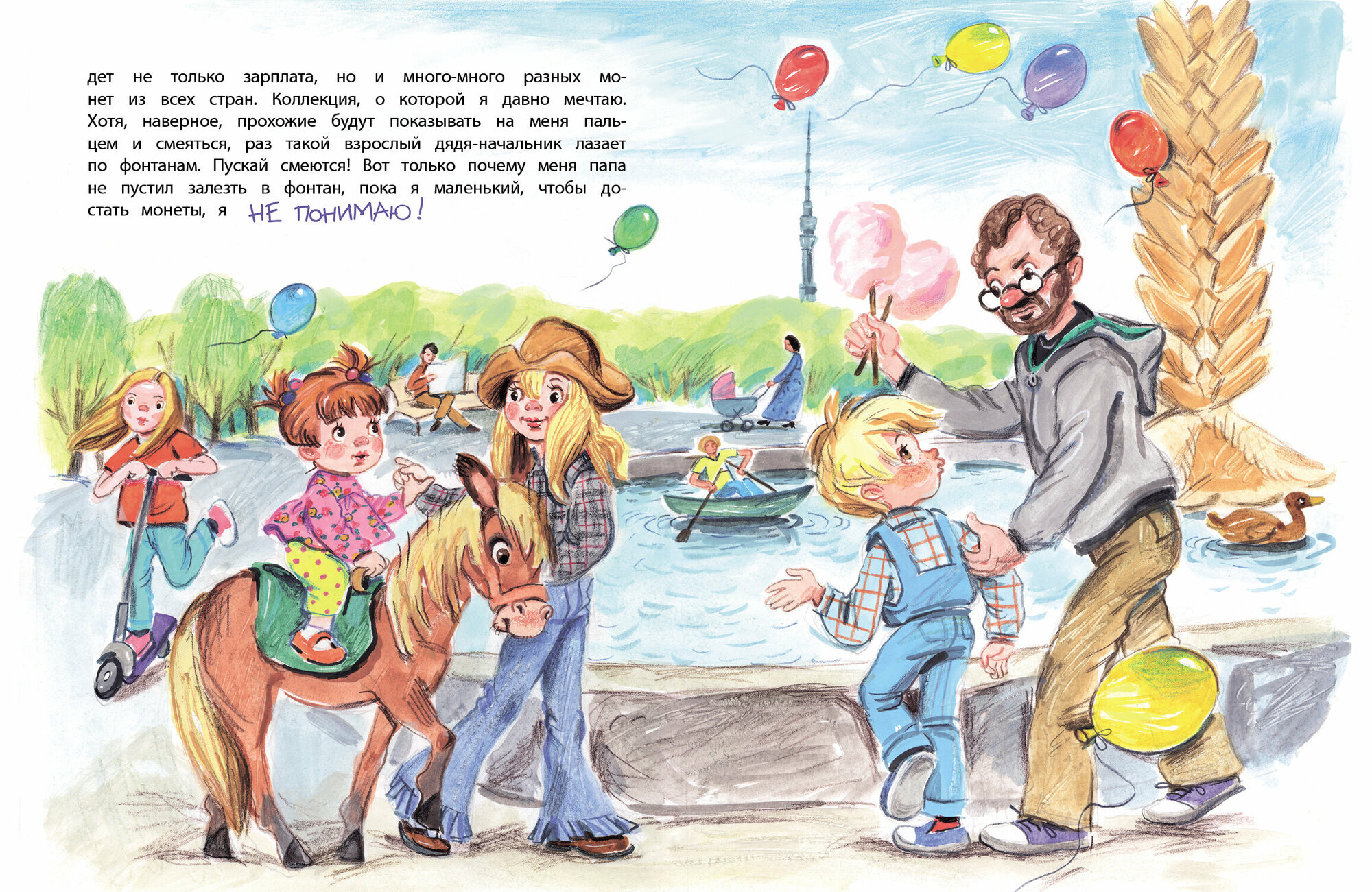 Или вот ходил Сашка с родителями в кукольный театр. Там ему очень понравилось – просто класс! Пришел Сашка домой и решил устроить собственный театр. Сначала вырезал из ткани питона Каа, а потом вырезал Багиру из черного блестящего маминого платья, которое она носила очень редко. Ведь ясно же: если бы платье нравилось, то мама ходила бы в нем постоянно! Почему же тогда мама расстроилась, да еще и отругала Сашку? Зачем так шуметь из-за ненужного платья?! Непонятно…Или еще. У всех Сашкиных друзей есть какие-то коллекции: кто-то марки собирает, кто-то значки. Сашка тоже решил что-нибудь коллекционировать. А тут как раз дядя Женя нес выбрасывать старые календарики. Десять тысяч! Правда, все они были одинаковые, но зато их оказалось ооочень много! Вот это коллекция! Сашка от восторга прыгал до потолка. Но родители сказали, что коллекция – это когда разные календарики, а когда одинаковые – это мусор. Почему? Непонятно…