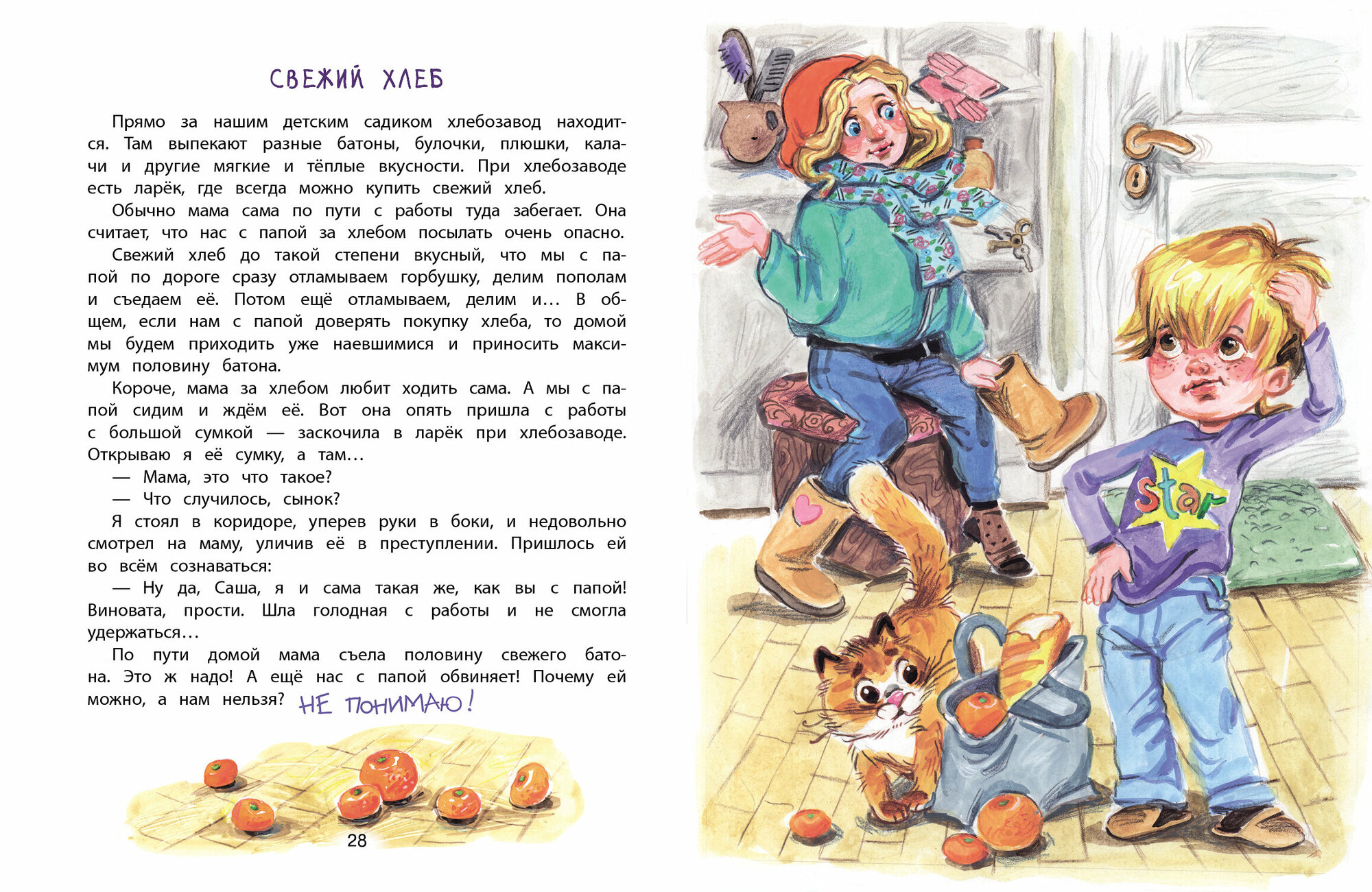 Очень смешные и трогательные рассказы. А иллюстрации какие! Моя первая ассоциация - это лучшие книги из моего детства, которые мы помним и любим до сих пор: это "Денискины рассказы" Драгунского, а еще Владислав Крапивин, Николай Носов и другие. Очень хочу, чтобы у книги "Не понимаю" появилось продолжение - настолько она моему сыну понравилась
