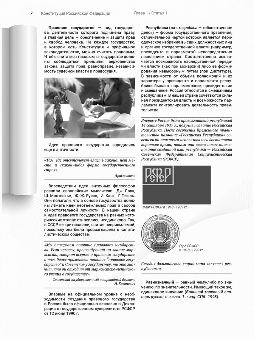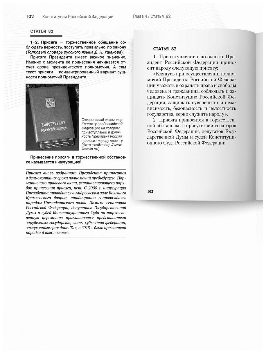 Подробный иллюстрированный комментарий к новой редакции Конституции Российской Федерации (текст с поправками, одобренными на всенародном голосовании 1 июля 2020 г.) дан с учетом конституционной теории и практики, норм федерального законодательства, международных актов. Для более легкого восприятия юридические термины и категории расшифровываются, сопровождаясь историческими справками, примерами из конституций зарубежных стран, иллюстрациями. Соответственно, читатель сможет не только ознакомиться с действующим конституционным законодательством России, но и узнать, как менялись понимание прав и свобод человека, сущность и предназначение органов государственной власти, взаимоотношения человека, общества и государства в нашей стране и мире.