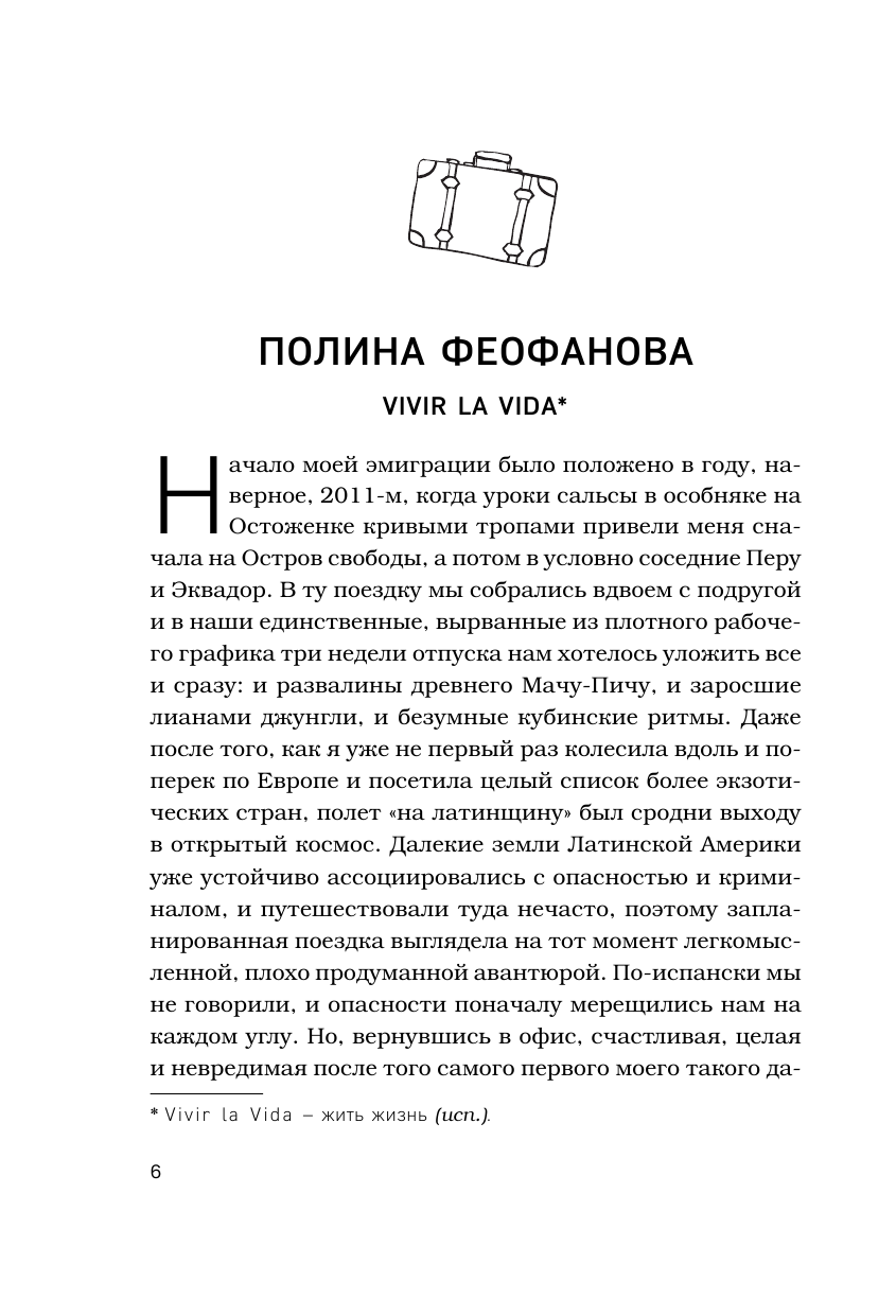 Прочитала за выходные, потрясающая легкая книга. Очень порадовало то, что это реальные истории российских путешественников - все истории откровенные и честные. Я например не знала, что можно поехать по студенческой программе работать в США на лето, полным открытием стал рассказ про жизнь в Латинской Америке. В книге есть полезная информация от каждого автора - что нужно посетить и попробовать в их стране, в приложении блок с иллюстрациями. Рекомендую!
