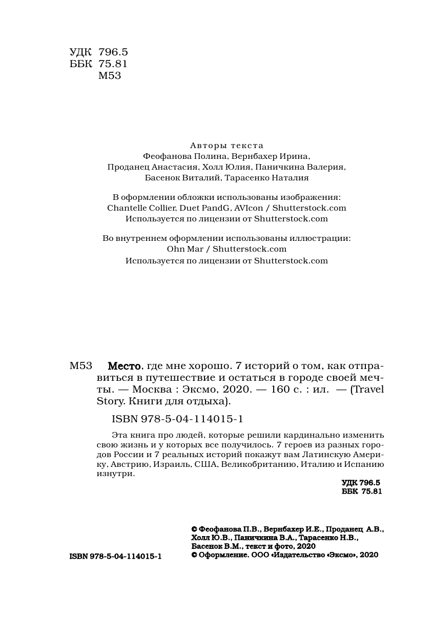 Место где мне хорошо. 7 историй о том как отправиться в путешествие и остаться в городе своей мечт (Феофанова Полина Геннадьевна; Вернбахер Ирина; Проданец Анастасия; Холл Юлия; Паничкина Валерия; Басенок Виталий; Тарасенко Наталия); Эксмо, БОМБОРА, 2020