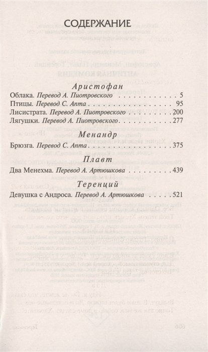 | Автор | Аристофан; Теренций; Менандр; Плавт |