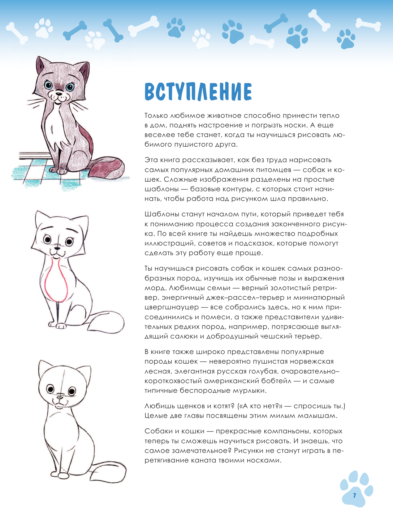 В книге вы найдете пошаговые инструкции, которые помогут нарисовать представителей самых разных пород - от бульдогов, такс и бернских зенненхундов до полосатых, персидских и сиамских кошек. Поверьте, следовать упражнениям Кристофера Харта так же легко, как поддаваться очарованию щенков и котят. В качестве бонуса, вы найдете множество подробных иллюстраций, советов и подсказок, которые помогут сделать эту работу еще проще.