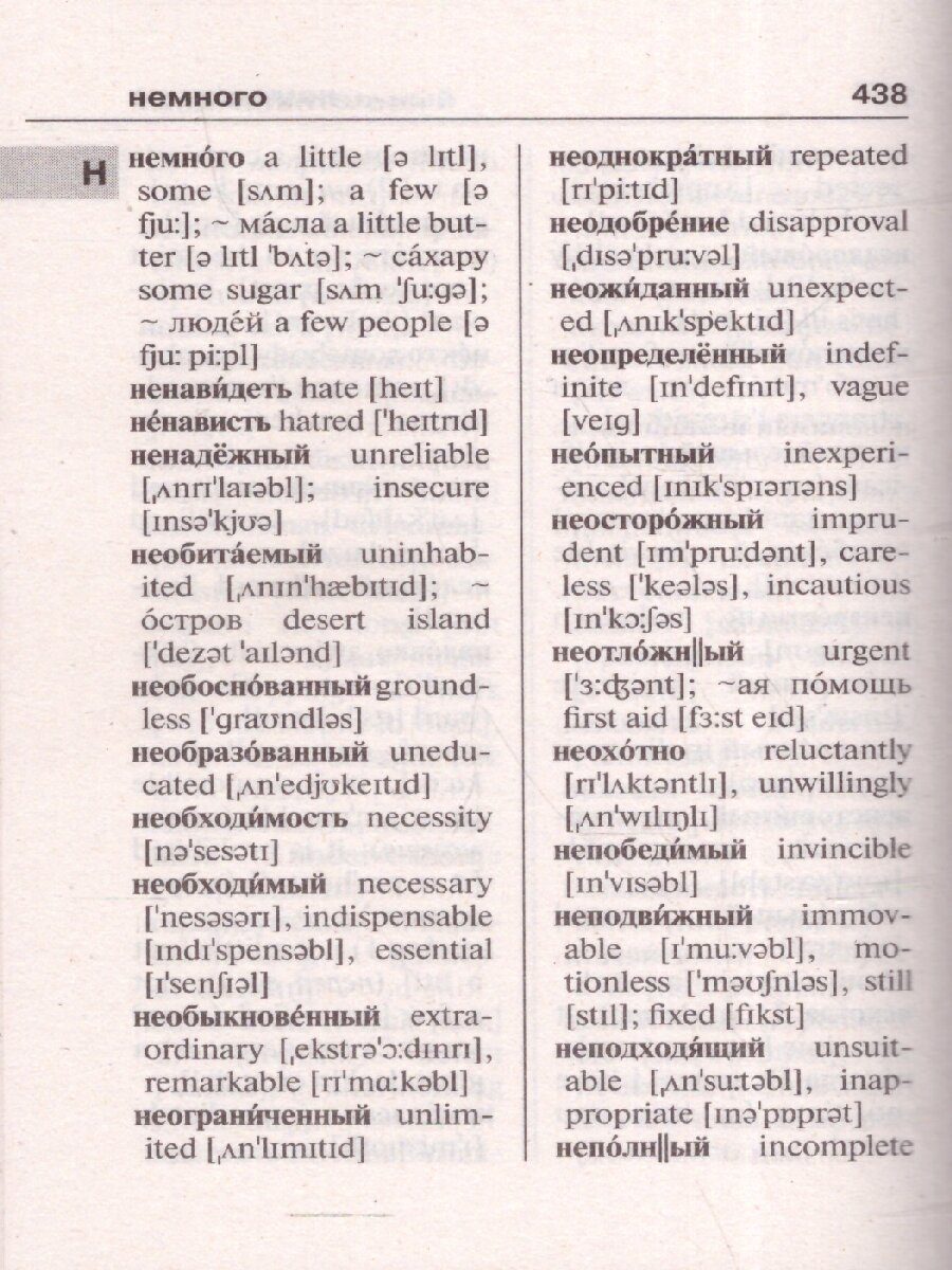 Все переводы значений и примеров в русско-английской части также снабжены транскрипцией.