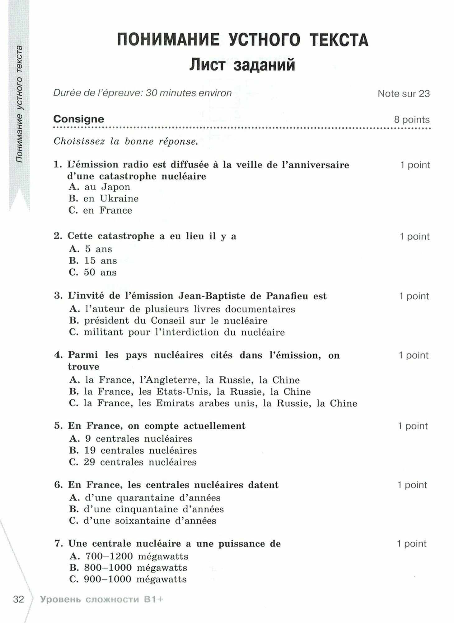 В пособии предложены варианты тестов по пяти разделам, соответствующие уровням сложности от А2+ до В2 Общеевропейской шкалы уровней владения ИЯ. В пособие также включены, транскрипции звучащих текстов, ключи и критерии оценивания творческих заданий.