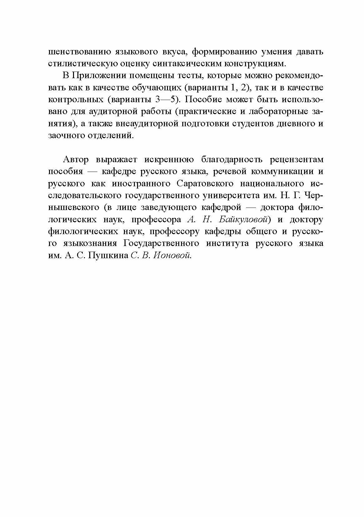 В Приложении приводятся контрольно-измерительные материалы (тесты) по разделам "Словосочетание", "Простое предложение", "Сложное предложение".