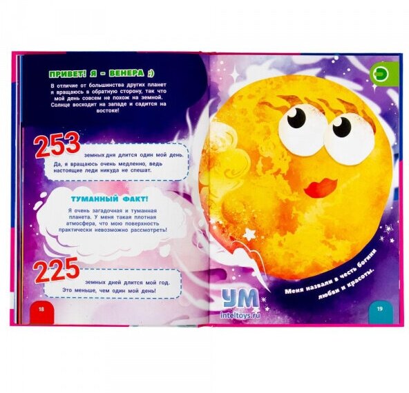 Начните исследовать с малышом тайны Вселенной уже сейчас - вместе с "Моей первой энциклопедией DEVAR". Среди других книг для самых маленьких книги этой серии выделяет наличие приложения с дополненной реальностью. Её использование превращает обучение в игру и прививает любовь к знаниям. Изучать неизведанное в энциклопедии "Загадочный космос" помогут сами планеты. Яркие и милые персонажи-небесные тела, наделённые уникальными характерами, рассказывают о себе самое интересное. С помощью технологии дополненной реальности они сходят со страниц и поют о себе! Вместе со словами песенок малыш запомнит основную информацию о планетах. Книга содержит развивающие задания, оживающую раскраску и диплом покорителя космоса. Энциклопедия вовлекает ребёнка в творчество, активизирует познавательную деятельность, развивает речь и расширяет кругозор. Оцените пользу энциклопедий в дополненной реальности DEVAR!
