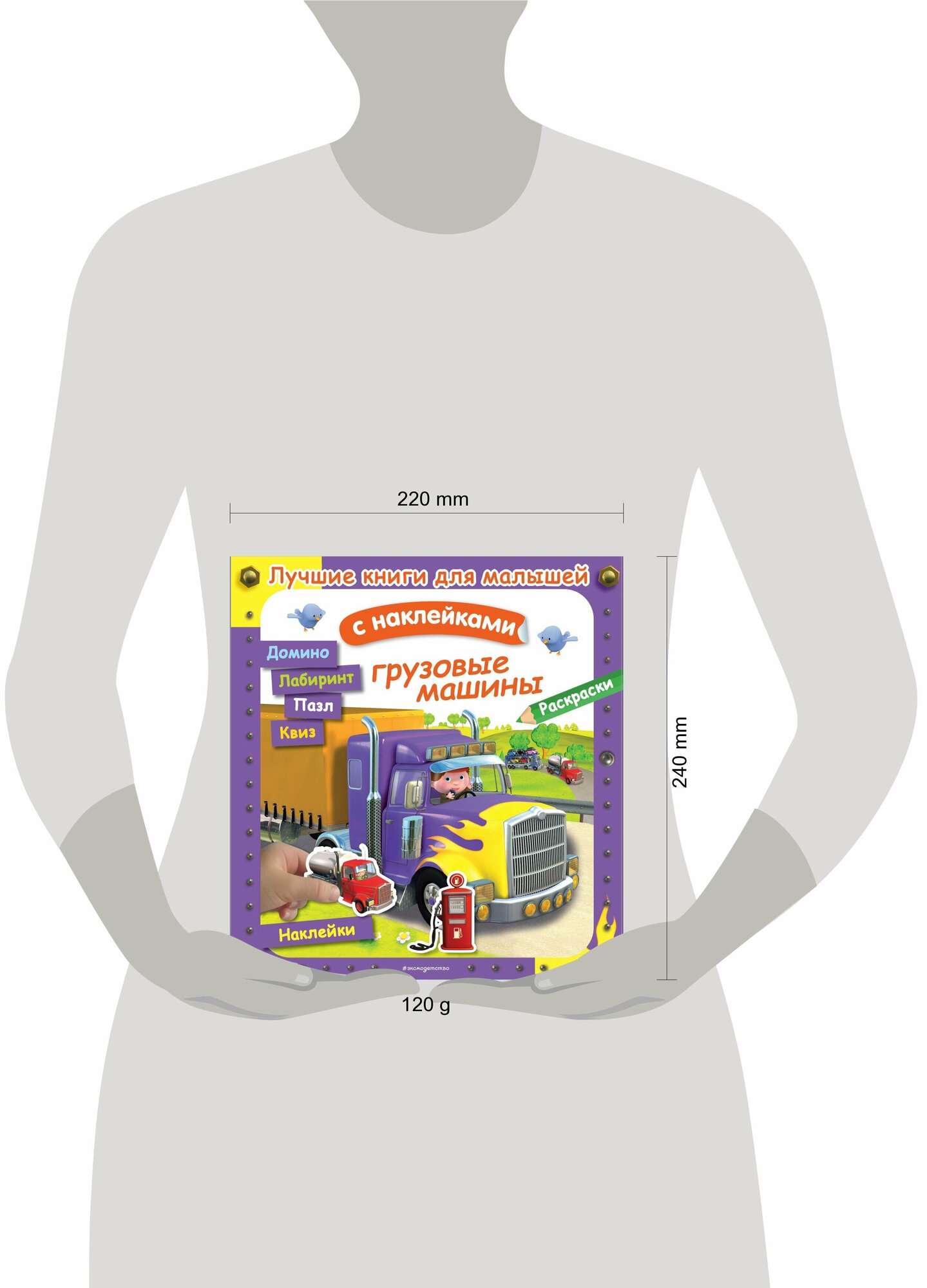 Что это за гиганты рассекают по дорогам? - Это грузовые машины - как они устроены, зачем им такой огромный кузов или прицеп, кому помогают грузовики - ребенку обязательно нужно все узнать. Предлагаем книгу с занимательными заданиями и наклейками, которые помогут их выполнить. Пускай ребенок в игровой форме - проходя лабиринты, собирая пазлы, играя в домино, раскрашивая, находя отличия, - знакомится с такими важными и полезными грузовыми машинами. А поможет ему в этом персонаж-гид, вместе с которым малыш проведет увлекательный день, встретит его друзей и решит пару занимательных квизов.