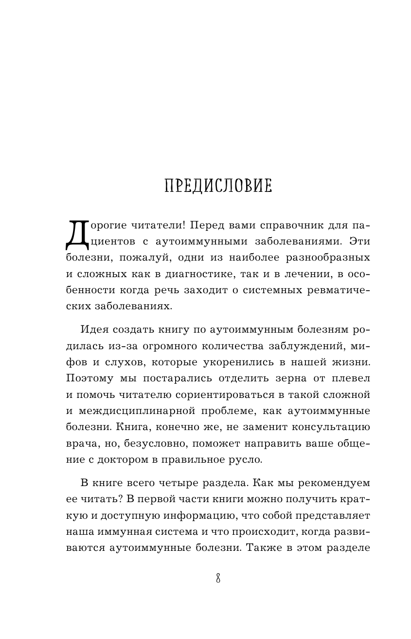 Иногда наш главный защитник - иммунная система - вдруг начинает играть против нас, поражая собственные органы и ткани. Аутоиммунные болезни сложные и коварные, а их лечение требует вдумчивого понимания развития и течения каждого конкретного заболевания. В этой книге собраны современные знания, необходимые, чтобы помочь пациентам комфортнее жить, лучше понимать лечащего врача и быть осведомленными в новейших данных о лечении аутоиммунных болезней. Вы узнаете, как распознают заболевания и какие современные схемы лечения существуют сегодня. В книге собраны ответы на самые актуальные вопросы:
