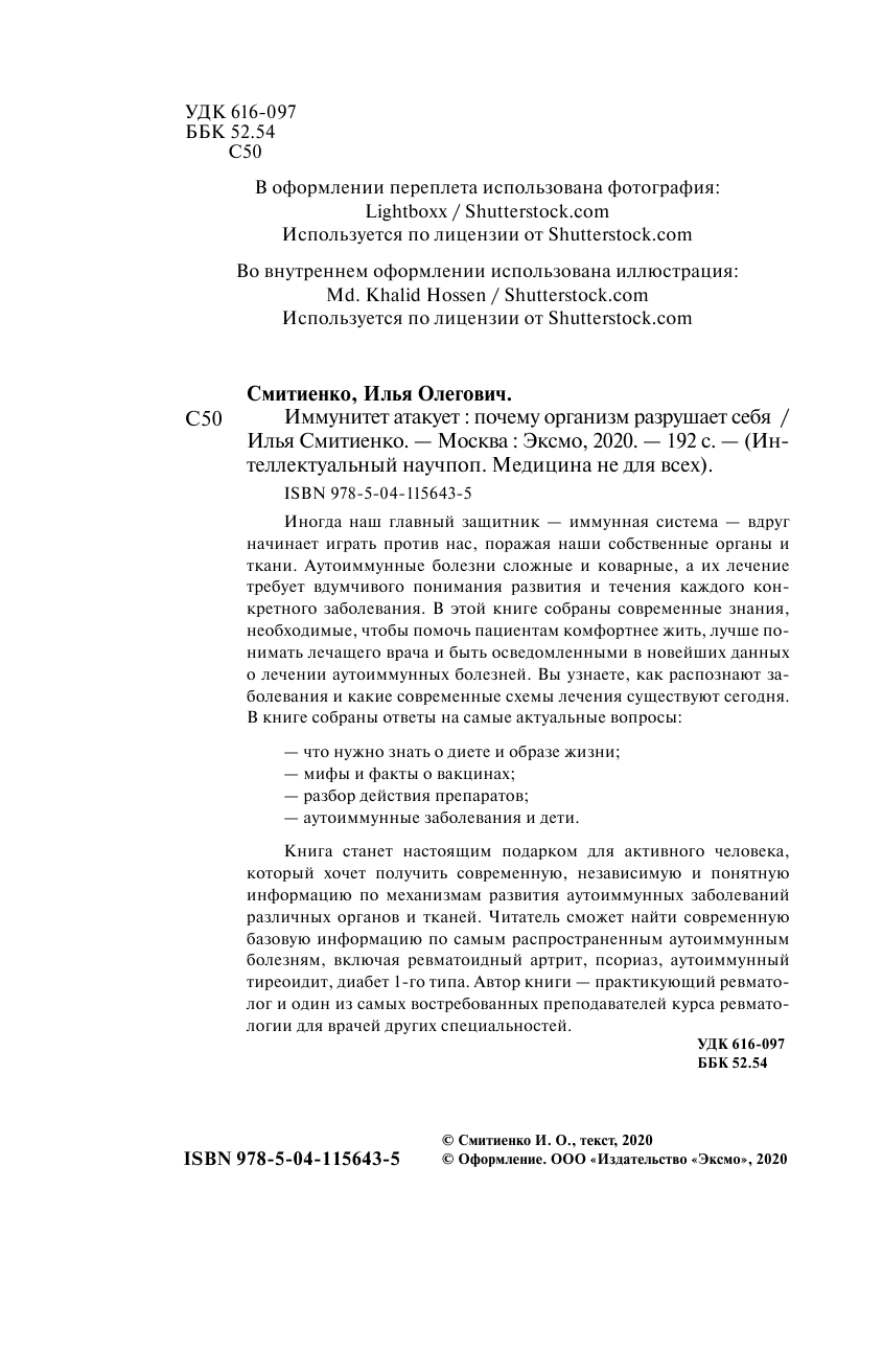 Иммунитет атакует. Почему организм разрушает себя (Илья Олегович Смитиенко); Эксмо, 2020