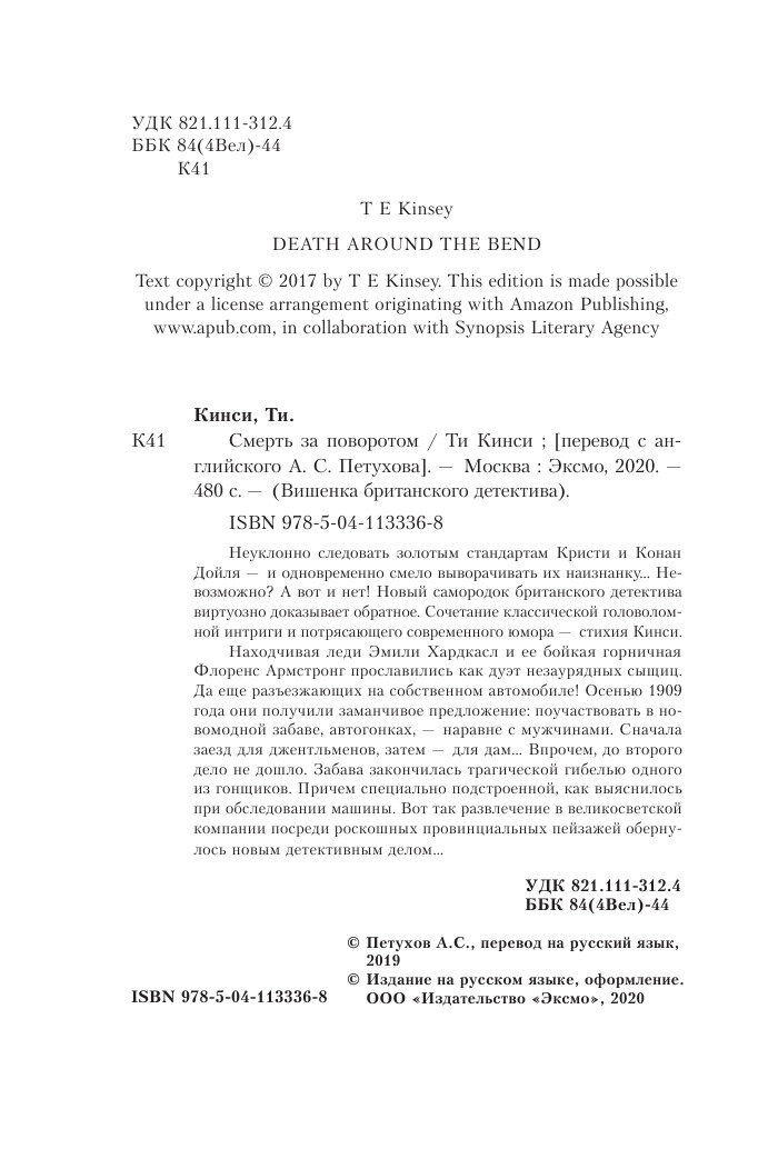 Книга: Смерть за поворотом (Ти Кинси); Эксмо, Редакция 1, 2020