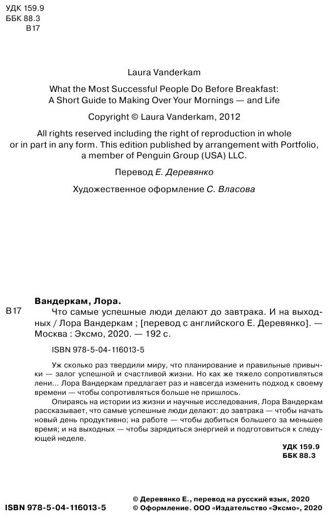 Что самые успешные люди делают до завтрака. И на выходных (Вандеркам Лора); ООО "Издательство "Эксмо", 2020