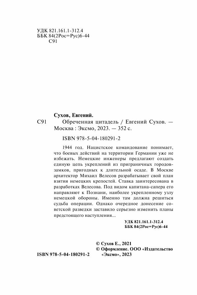Книга: Обреченная цитадель (Евгений Евгеньевич Сухов); Эксмо, 2020