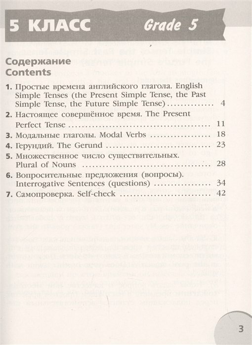 Пособие разделено на классы. Каждый класс включает блок грамматических тем, которые содержат теоретический материал и упражнения на его отработку. Грамматический материал для 5-7 классов построен по концентрическому типу, т.е. на последующих уровнях обучения, помимо знакомства с новым материалом, продолжается работа с уже пройденными темами, но в расширенной и усложненной форме.