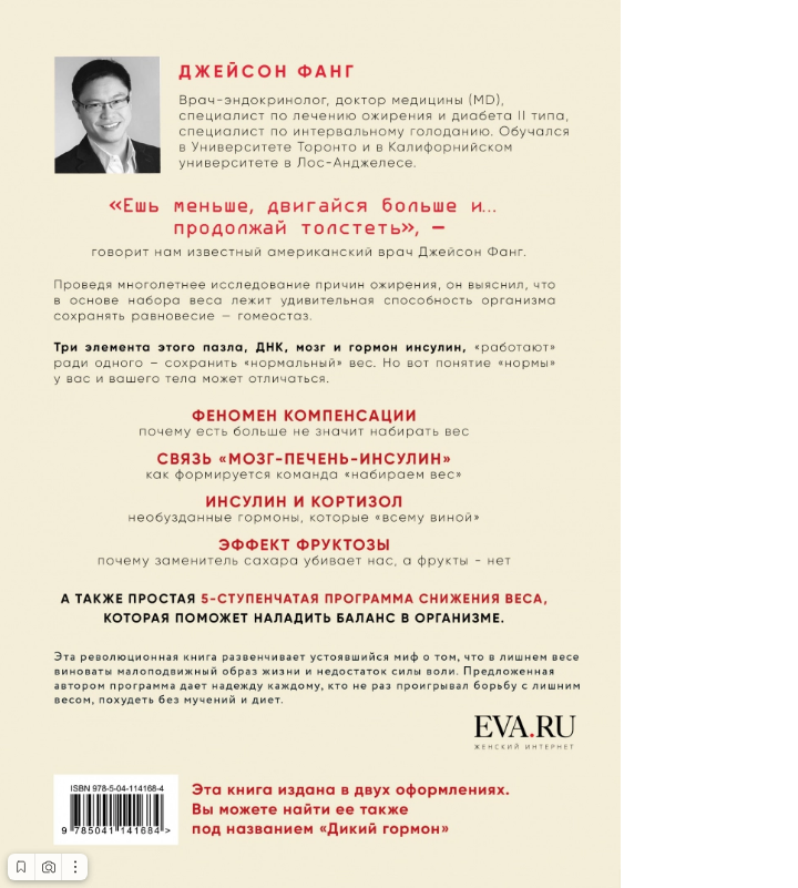 Спасибо издательству за переиздание этой революционной книги Джейсона Фанга в оригинальном оформлении! Эту книгу по всему миру знают и любят именно как "Код ожирения", а то, что "Дикий гормон" - это та же книга, знали далеко не многие, и вот наконец путаницы не будет.