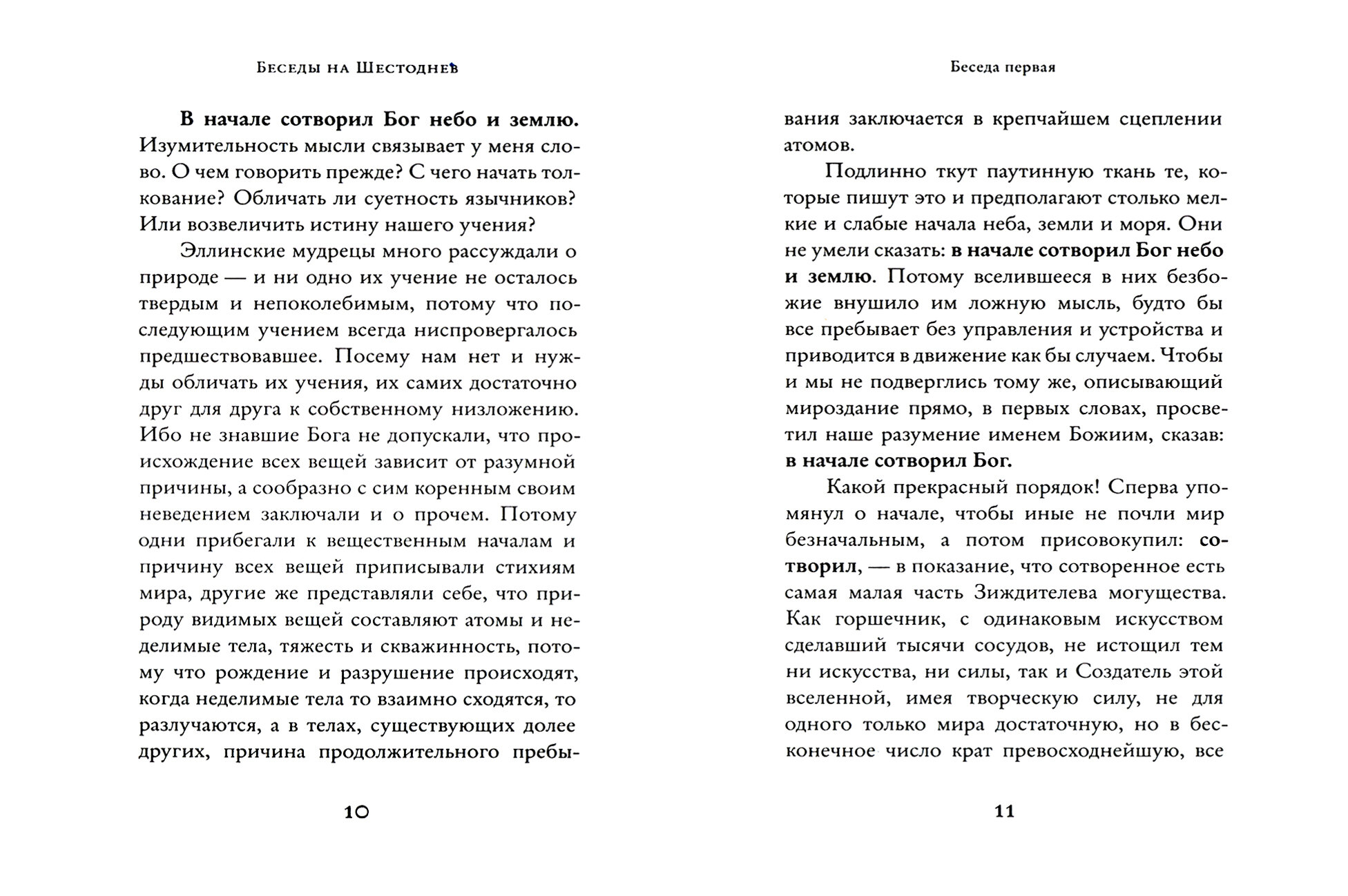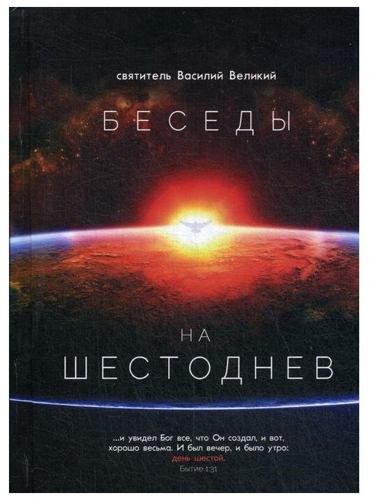 Богословский труд Василия Великого "Шестоднев" - девять бесед на первую главу Книги Бытия - замечателен не только своим глубоким религиозным настроением, но и по тем философским и научным выводам, которые сохранили свою ценность и для настоящего времени. Текст первых девяти бесед приводится по изданию: Творения иже во святых отца нашего Великаго, Архиепископа Кесарии Каппадокийския.