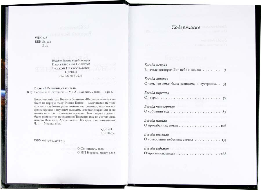 Книга: Беседы на Шестоднев (Святитель Василий Великий); Синопсисъ, 2020