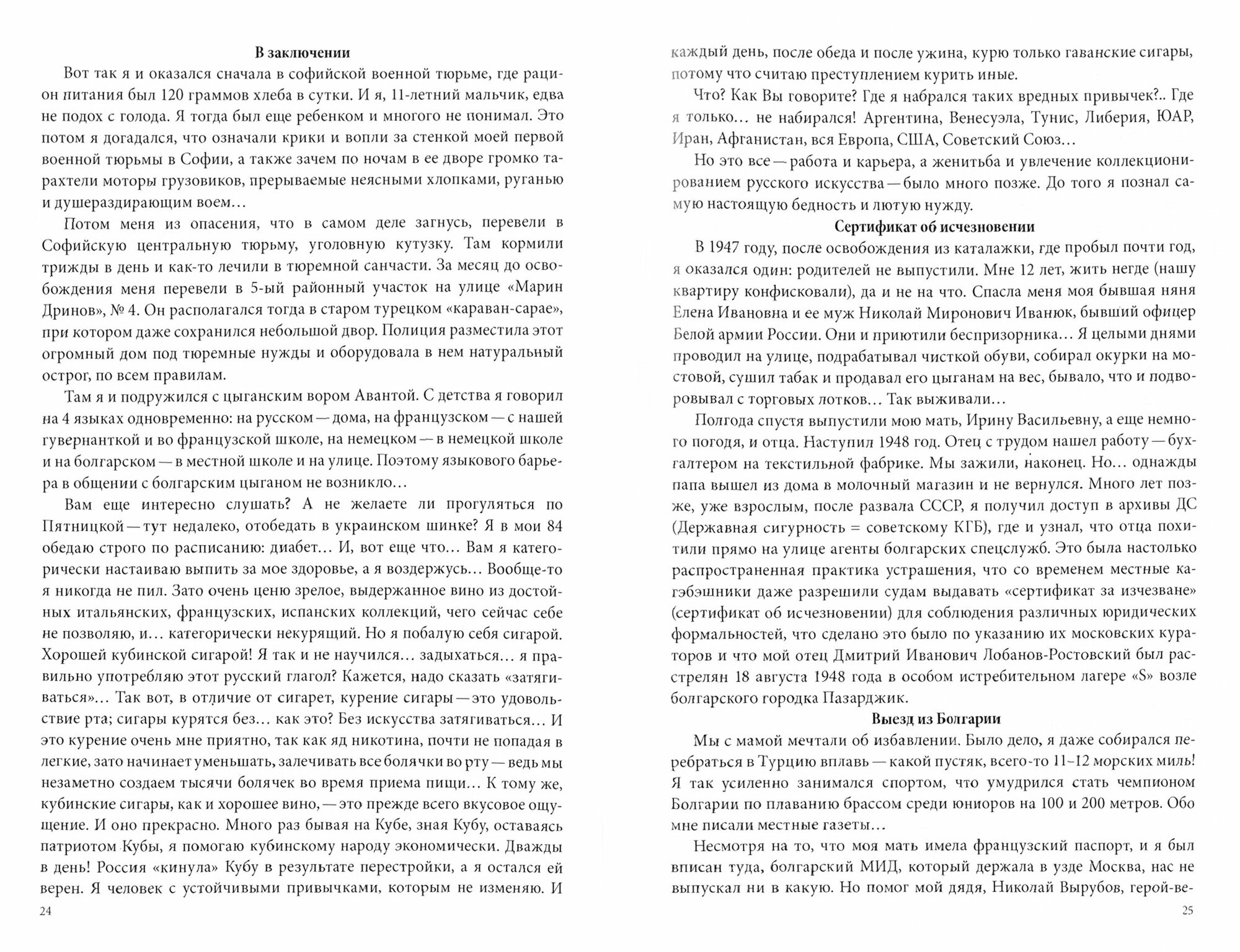 В книгу включены статьи, выступления Н.Д. Лобанова-Ростовского, интервью с ним, публикации последних лет о нем и его роде. Впервые представлены архивные материалы органов болгарской госбезопасности послевоенной Болгарии, связанные с арестами членов семьи Лобановых-Ростовских.