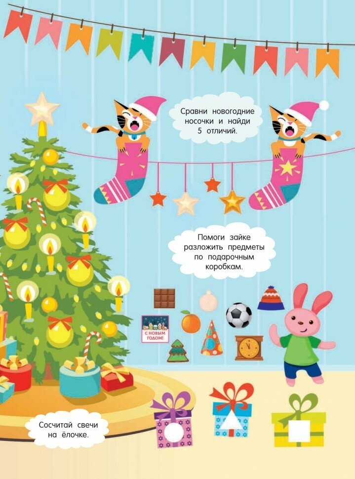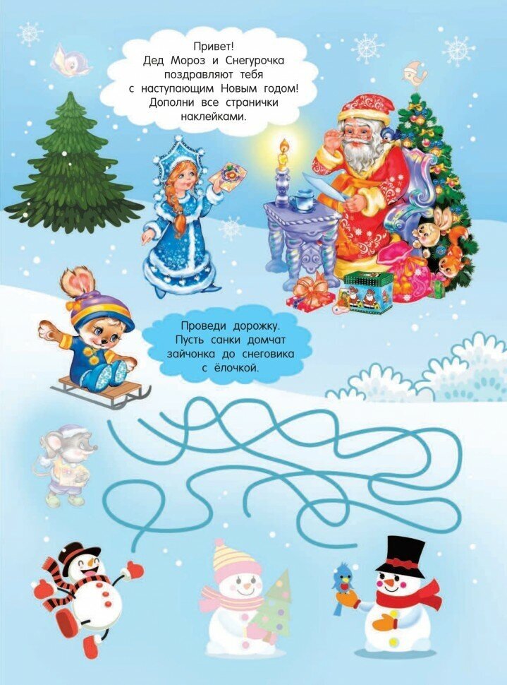 Что может случиться в канун Нового года? Конечно, чудеса! Именно в это время так здорово посоревноваться, кто быстрее справится с игровыми заданиями, а еще - сделать для мамы и папы, бабушки и дедушки, а также всех друзей новогодние сюрпризы и украсить их наклейками из этой книжки.