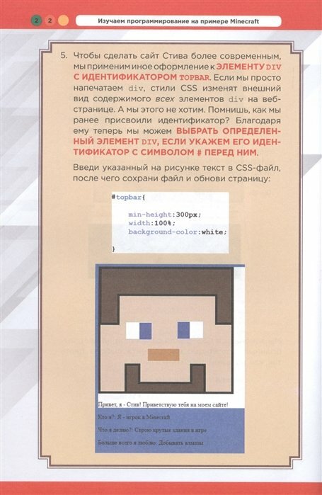 Отличная, с хорошим составленным текстом и полная красивых визуальных элементов и четких инструкций. Эта книга - отличный вариант для детей, которые хотят научиться программировать и любят Minecraft. Благодаря ей, можно отточить основы и приобрести новые знания в данной области.