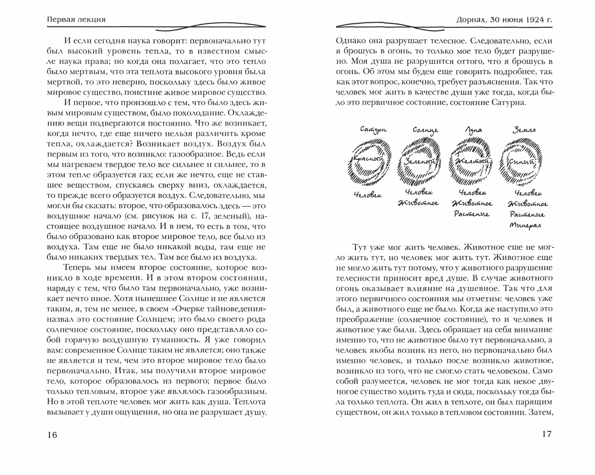 В основном содержание охватывает древнейшие состояния Земли, возникновение ее обитателей, влияние планет, комет и метеоритов на погоду, земную жизнь в целом и на человека. Описываются древнекитайская и древнеиндийская культуры. Несколько лекций посвящено вопросам питания и возникновению запахов. Рассматривается образование Земли и Луны, теория геокристалла, возникновение вулканов и молний. Затронуты некоторые социальные вопросы, а также соотношение ритмов в человеческом организме с ритмами космических тел, Солнца, Луны, планет и звезд.