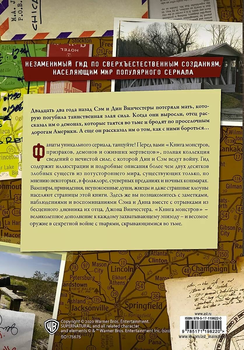 Книга очень нравится по оформлению и содержанию! Читается легко и интересно, фанатам сериала "Сверхъественное" точно понравиться, отличное дополнение к коллекции по любимому фандому, всем рекомендую приобрести! Я уже 7 лет смотрю "Сверхъетсвенное" и была в полном восторге, когда узнала , что в продажу АСТ выпускает такое шикарное издание, да и еще про призраков, чудовищ и т.д по любимой вселенной! Очень довольна покупкой, нисколько не пожалела. Спасибо большое издательству АСТ за то, что радуете нас, фанатов семьи сверхъественное!!!