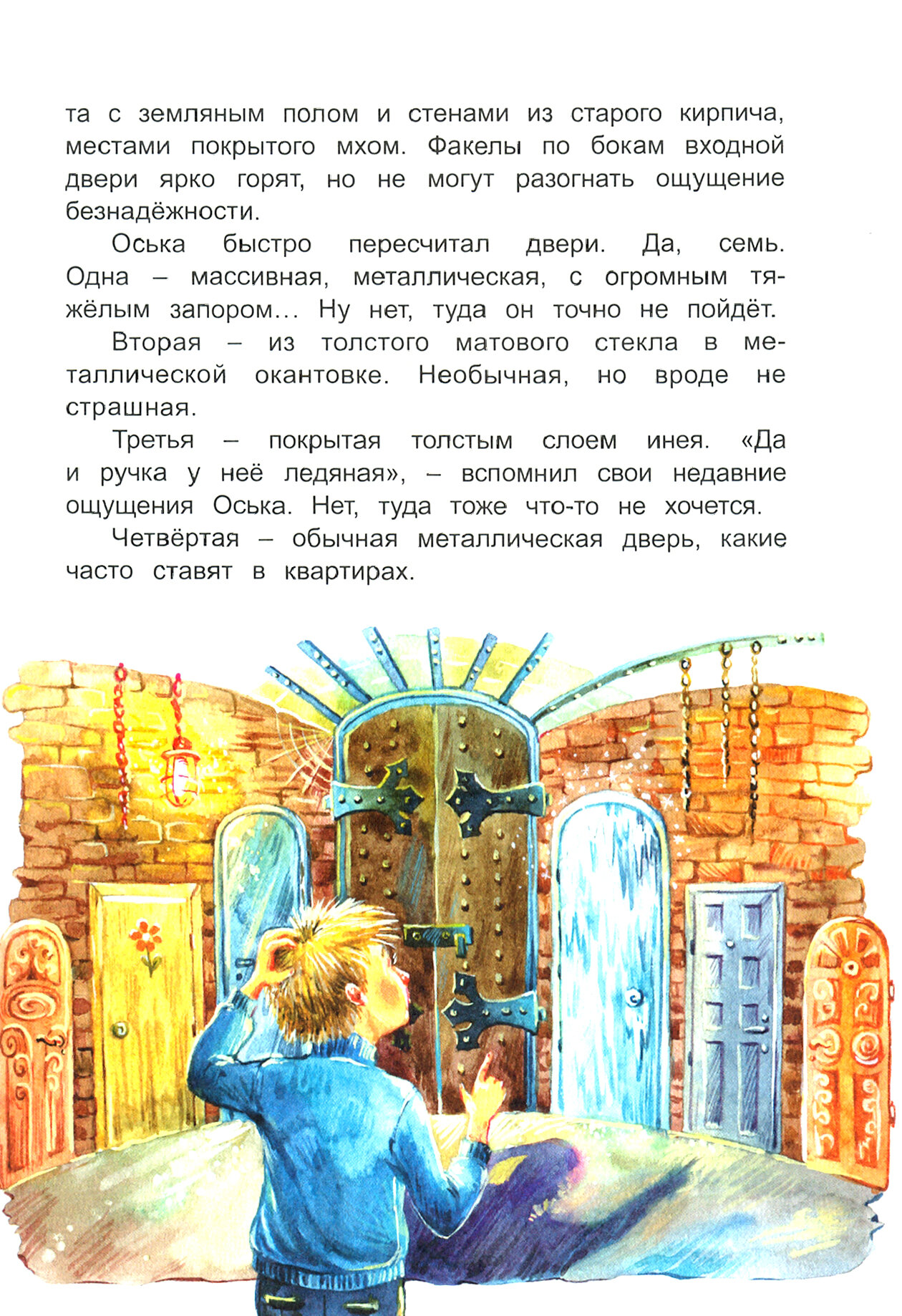 Надо сказать. что ни одной познавательной книги по математике я не прочитала дальше трех страниц. А эту книгу я читала с восторгом! Дело в том, что там мальчишка попадает в заброшенный подвал, выбраться из которого можно только решая задачки. Тогда откроется очередная дверь, и это спасает его от голодных троллей, которые гонятся за ним. На решение всего 15 секунд, поэтому всё происходит стремительно! Но дверей много: решил неправильно - есть еще шанс. Сначала я не могла понять: в чем фишка, почему книга не раздражает? А секрет в том, что нет никаких объяснений с решениями: открылась дверь - правильно, нет -. давай следующую. Задачки невероятно забавные. И как-то хочется посчитать ответ задачки. А текст такой драйвовый, что оторваться трудно, но потом возвращаешься и спокойно считаешь. Ну, это только начало книги, там много героев дальше появляется, волшебный мир с удачным смешением старины и современности и приключений разных тьма. В общем, очень необычная и очень здоровская книга с ненавязчивой математикой.