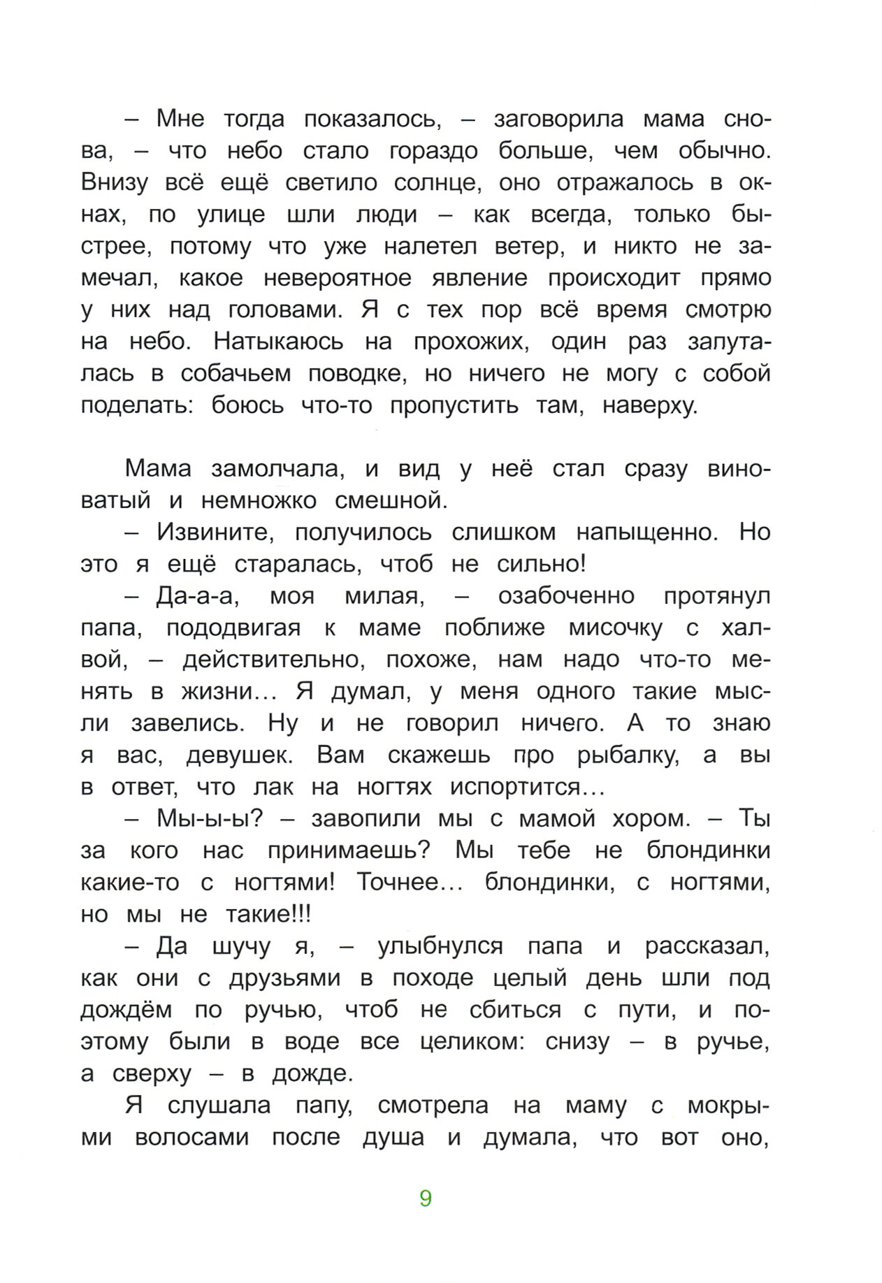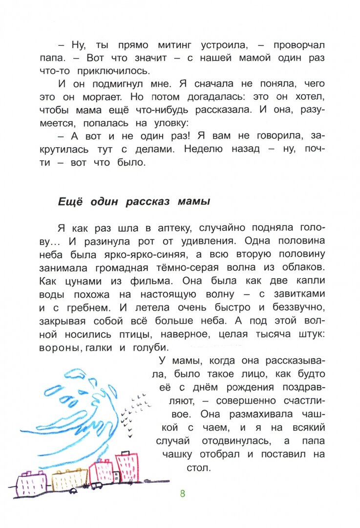 Замечательные родители, бабушка и дедушка в этой книжке. А всё, кстати, начинается с мамы. Она попадает в городе в "зелёную бурю". Мама также один из главных персонажей, потому что она такая... увлекающаяся, что может забыть зачем шла в комнату и заняться другими делами, а может просто сесть и написать картину. И, конечно, мама - главная придумщица интересных событий.