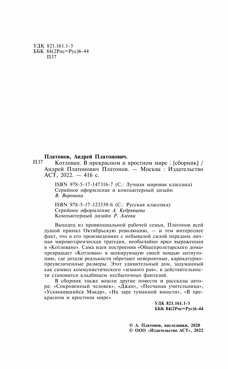 Котлован. В прекрасном и яростном мире (Платонов Андрей Платонович); ООО "Издательство Астрель", 2020