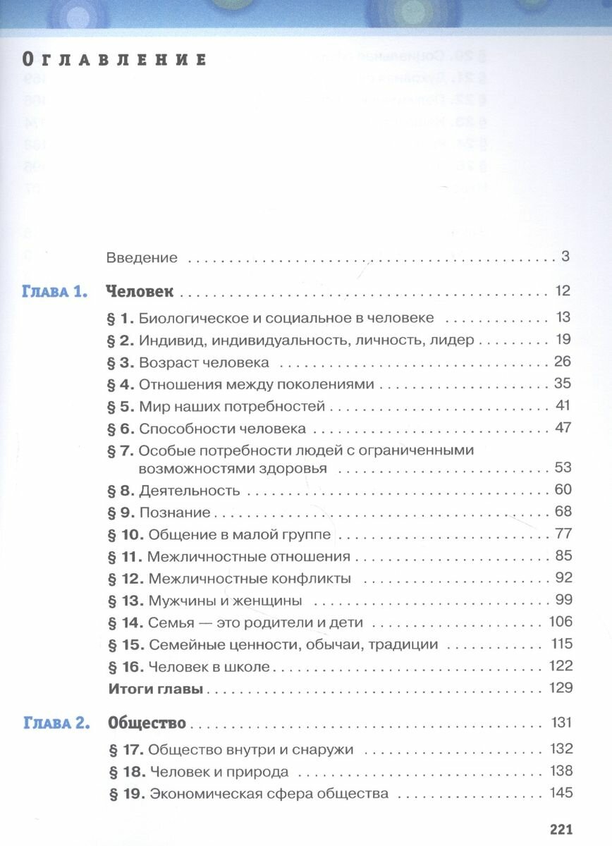Учебник рассказывает школьникам о природе человека, на доступном для шестиклассников уровне знакомит их с миром человека, а также главными характеристиками современного общества. Методический аппарат учебника содержит фрагменты из документов, а также задания разного уровня сложности, что позволяет реализовать системно-деятельностный подход в обучении школьников.