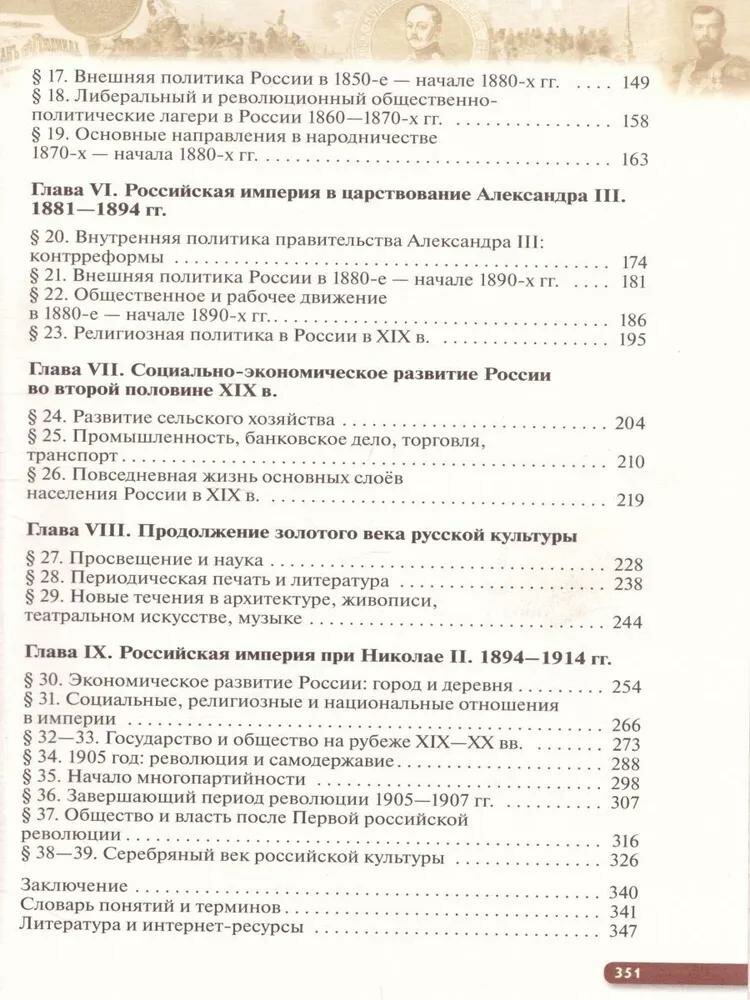 Учебник, подготовленный в соответствии с историко-культурным стандартом, охватывает период отечественной истории XIX - начала XX в. Содержание учебника направлено на развитие познавательных интересов учащихся. В основе методики учебника - системно-деятельностный подход, способствующий формированию умений самостоятельно работать с информацией и использовать её в практической деятельности.