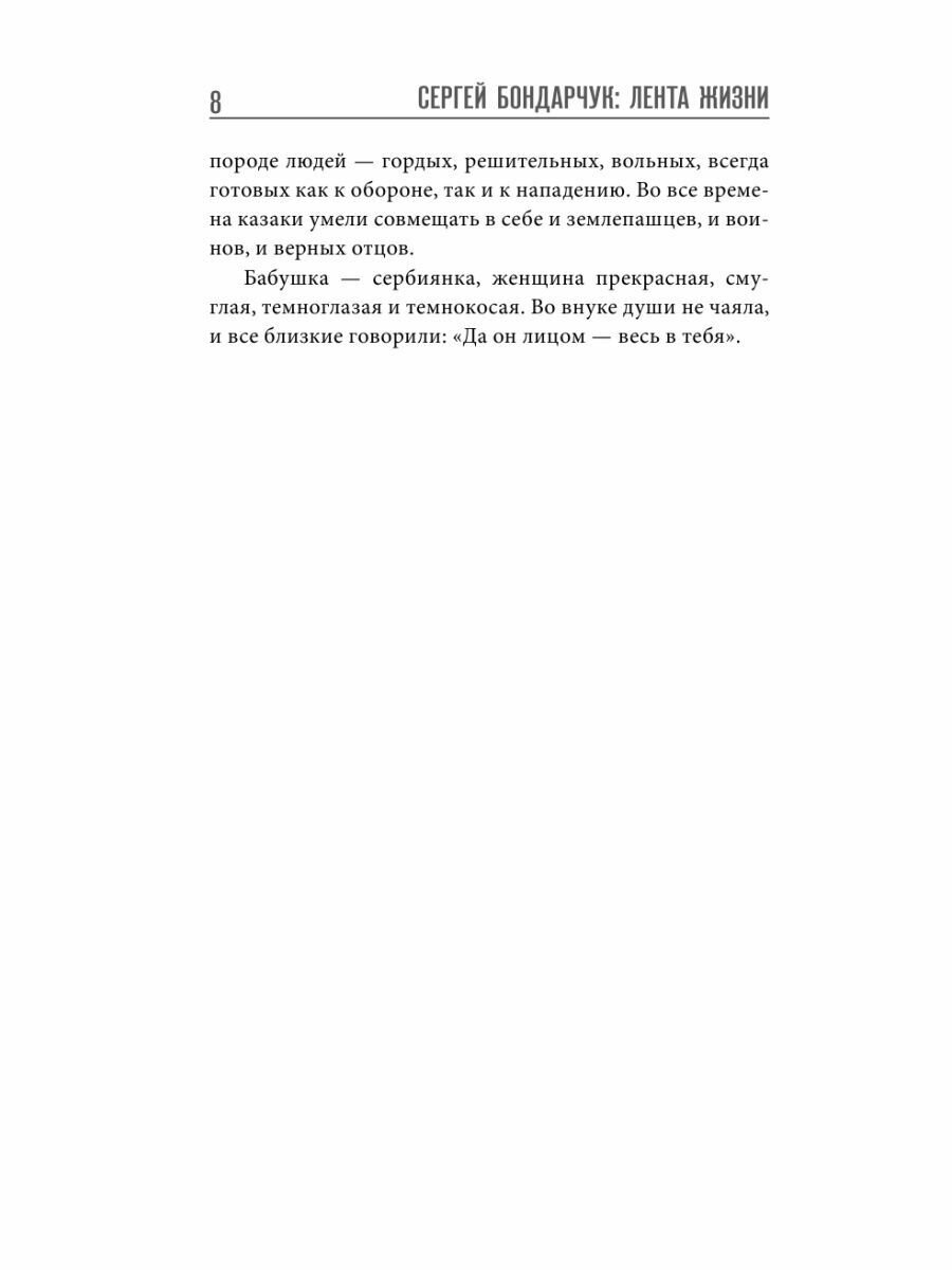 Сергей Бондарчук известен прежде всего как режиссёр, его фильмы ценят и любят во многих странах. Мне интересен Бондарчук также и в качестве актёра, люблю его актёрские работы в фильмах «Неоконченная повесть», «Молчание доктора Ивенса», «Они сражались за Родину», «Серёжа», «Война и мир». Книга Натальи Бондарчук написана с любовью к отцу и необыкновенному человеку, таких режиссёров и актёров становится всё меньше. Книга будет интересна и киноманам, и любителям светлого советского искусства.