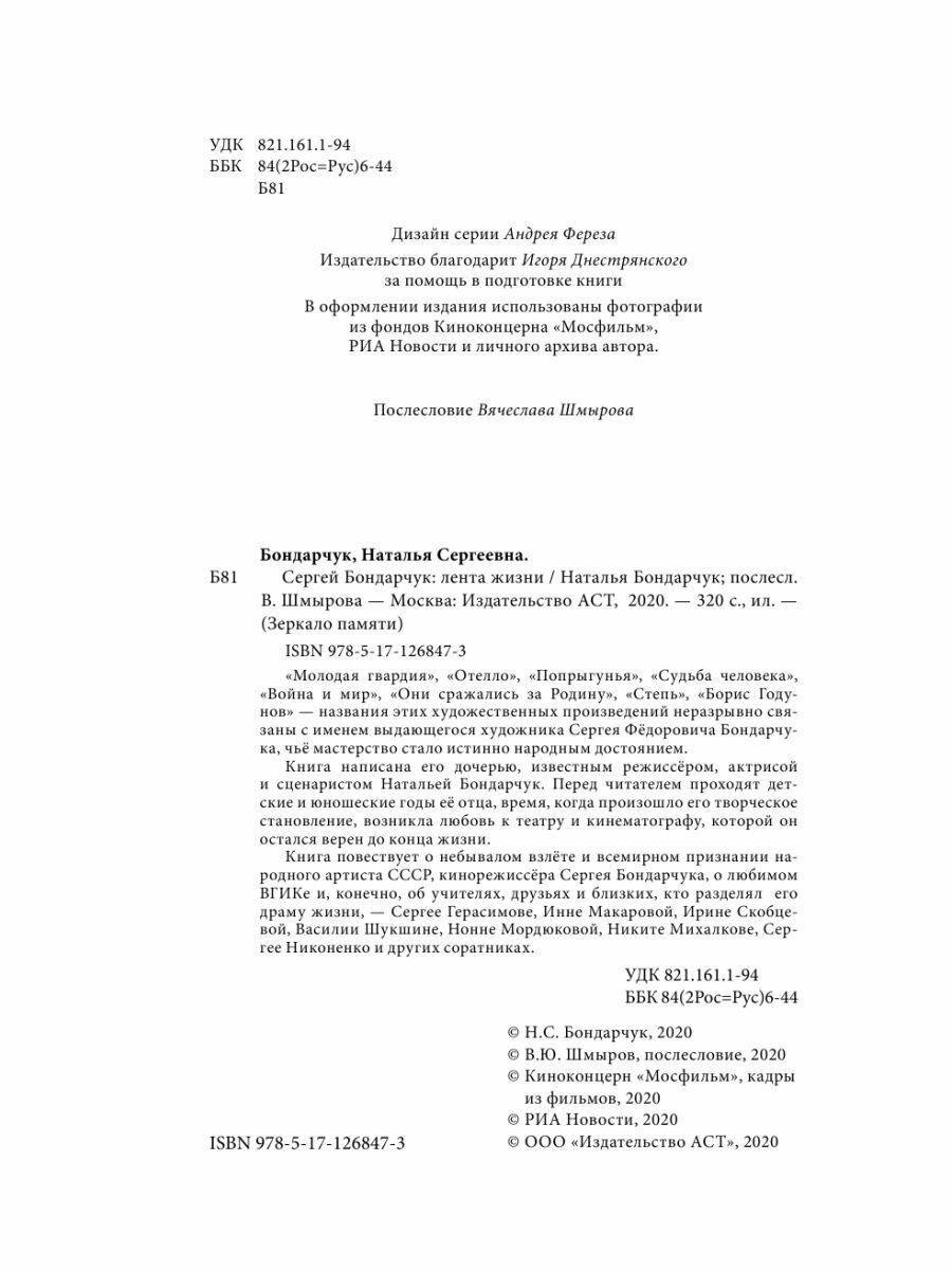 Сергей Бондарчук. Лента жизни (Наталья Сергеевна Бондарчук); Издательство АСТ, 2020