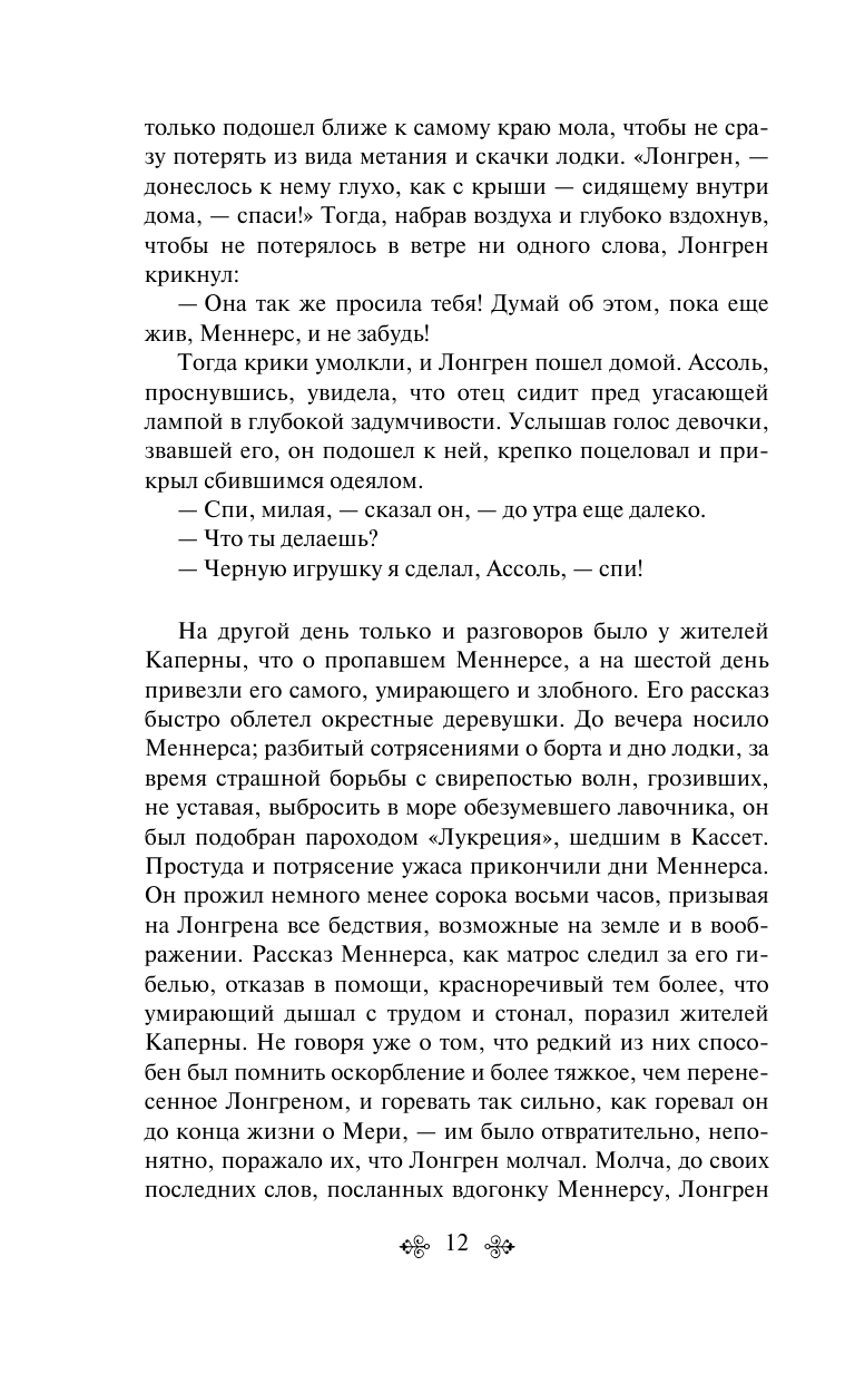Если честно прочла эту книгу первый раз. Ранее слышала данную историю , но мои руки до этой книги дошли только сейчас . Могу сказать что это именно сказка . Сказка со счастливым концом . Да было моментами читать тяжело , но интересно . Милая, интересная история о любви о которой мечтает каждая девушка , что придает принц и заберет ее в чудесные края . Ради которой мужчина будет готов на все , даже найти те самые алые паруса .