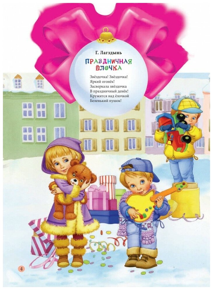 Серия «Подарок под ёлку» – это идеальный вариант для новогоднего подарка малышу! Ведь здесь собраны лучшие зимние стихотворения отечественных детских поэтов – С. Я. Маршака, А. Л. Барто, К. И. Чуковского и других. А красочные иллюстрации известных художников Е. Алмазовой и В. Шварова прекрасно дополняют их. Завершает образ книги и делает ее по-настоящему подарочной вырубка в форме банта.