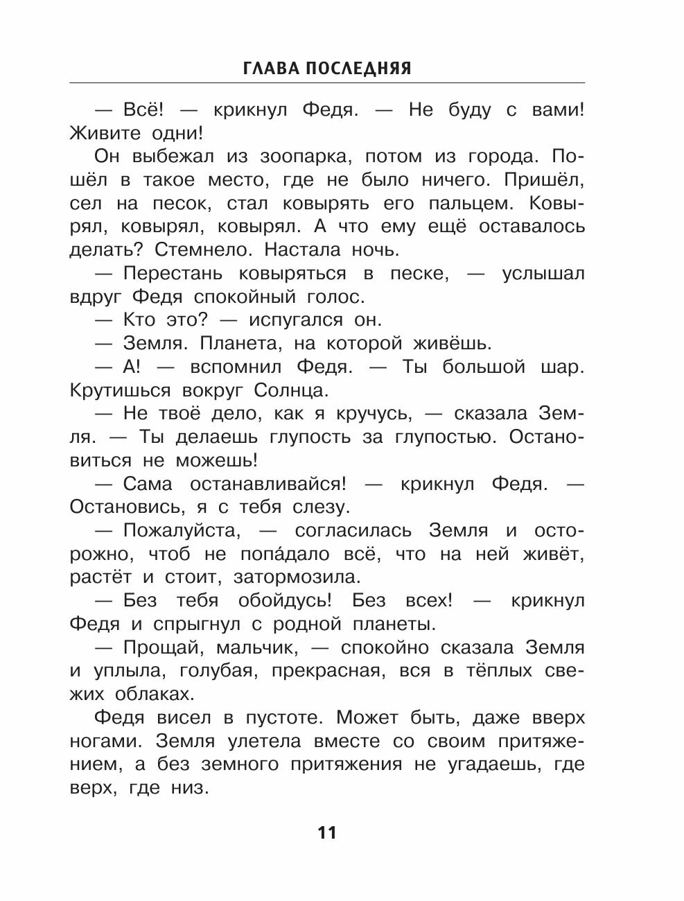 Первая "толстая" книга трёх дочерей (2006, 2009, 2013 годов рождения), правда в другом издании, но с теми же иллюстрациями. Та самая книга, которая наконец-то увлекла! Это при том, что от гаджетов и компьютеров их становится всё труднее оттащить. Читалась всеми на одном дыхании. Последней дочери даже использовали в качестве анестезии: я ей расковыривала шипишку, а она читала книжку и ни разу не пикнула. Сегодня утащила дочитывать в школу, несмотря на тяжесть портфеля. Старшая дочь сейчас читает много. Считаю, что немалый вклад внесла именно эта книга. Огромное спасибо Григорию Бенционовичу и Николаю Павловичу. Обязательна к прочтению младшими школьниками!