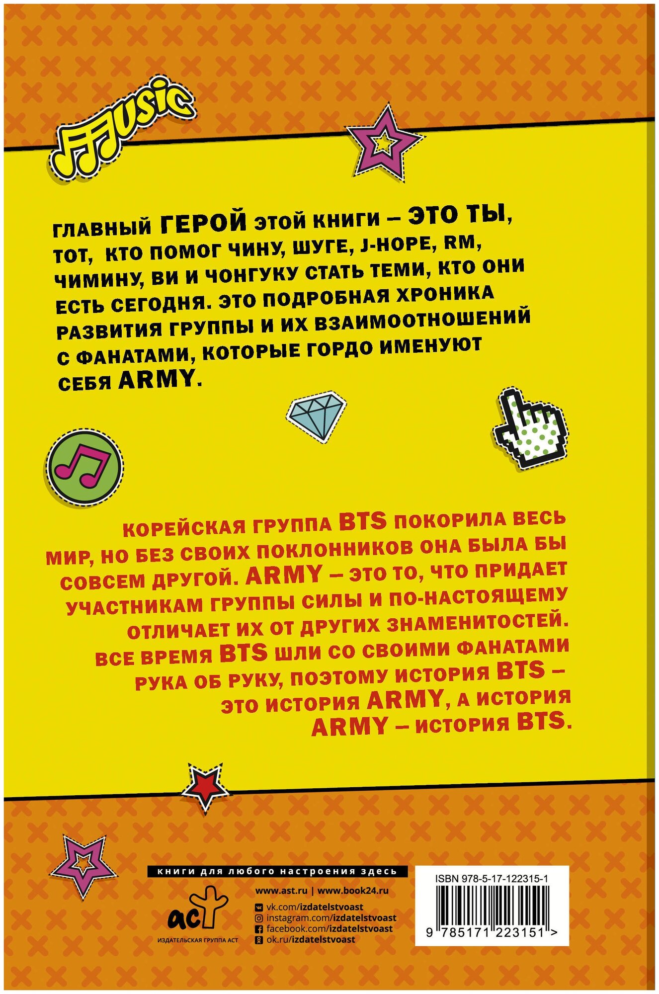 Главный герой этой книги – это ты, тот, кто помог Джину, Шуге, J-Hope, RM, Чимину, Ви и Чонгуку стать теми, кто они есть сегодня. Это подробная хроника развития группы и их взаимоотношений с фанатами, которые гордо именуют себя ARMY.
