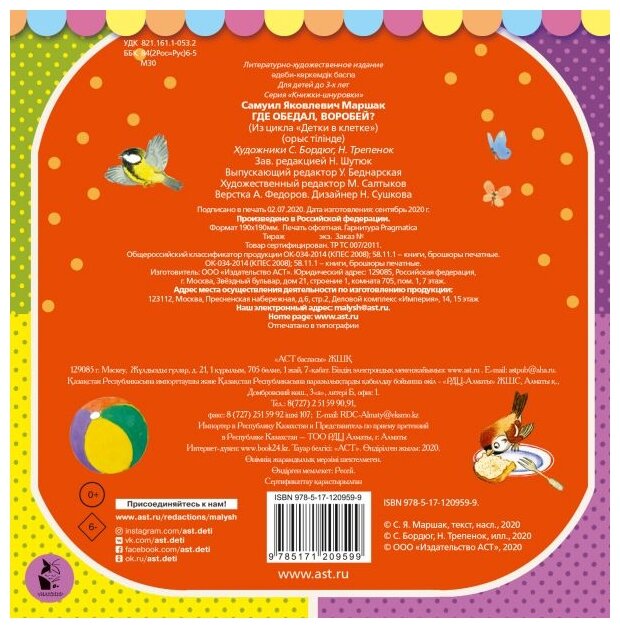 На сегодняшний день товар «Книга: Где обедал воробей? (Маршак Самуил Яковлевич); ООО "Издательство Астрель", 2020» можно купить с кешбеком в 4 магазинах: book24, Буквоед, Яндекс.Маркет, Читай-город