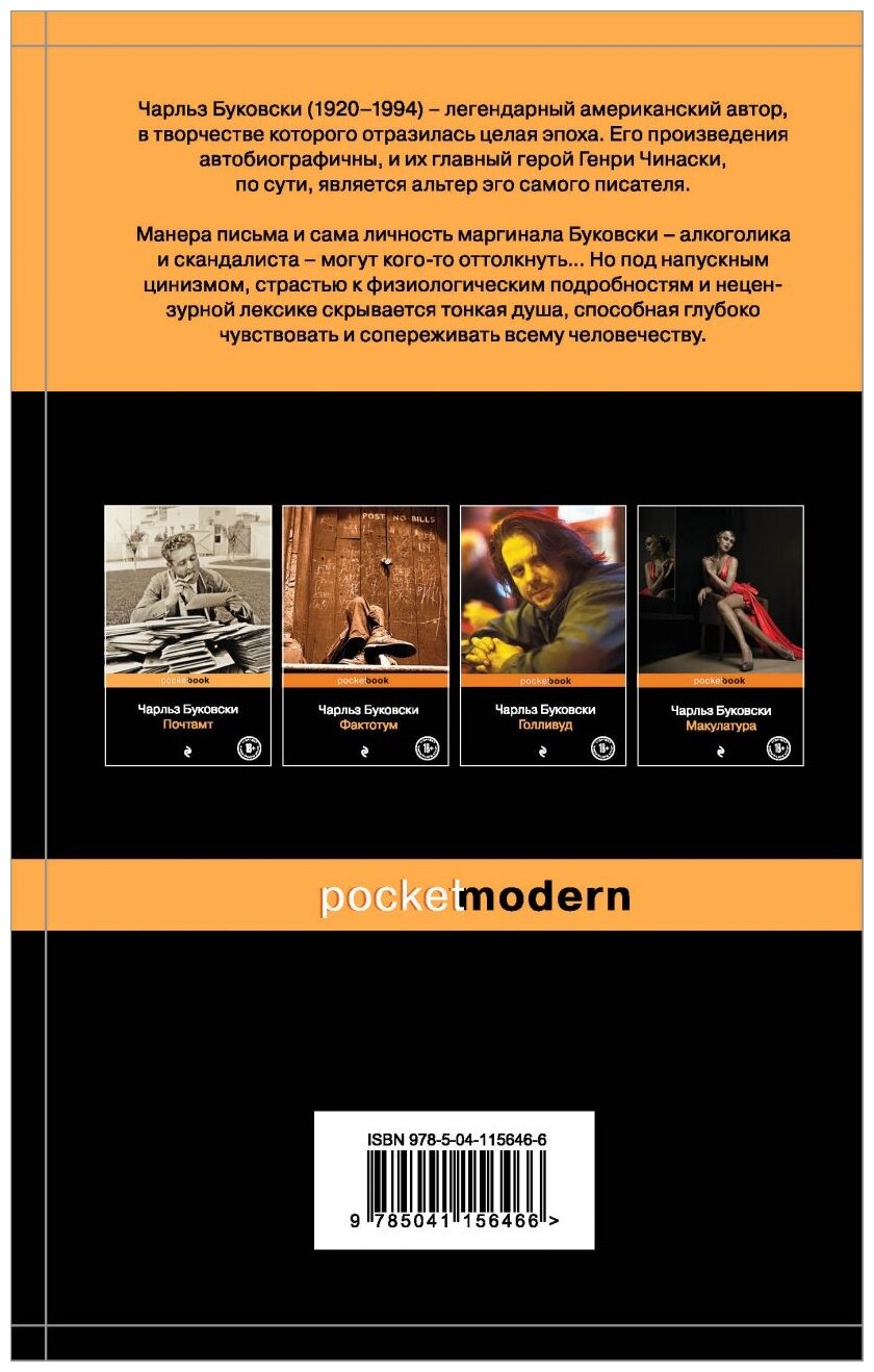 Чарльз Буковски - один из крупнейших американских писателей ХХ века, автор более чем сорока книг, среди которых романы, стихи, эссеистика и рассказы. Несмотря на порою шокирующий натурализм, его тексты полны лиричности, даже своеобразной сентиментальности.
