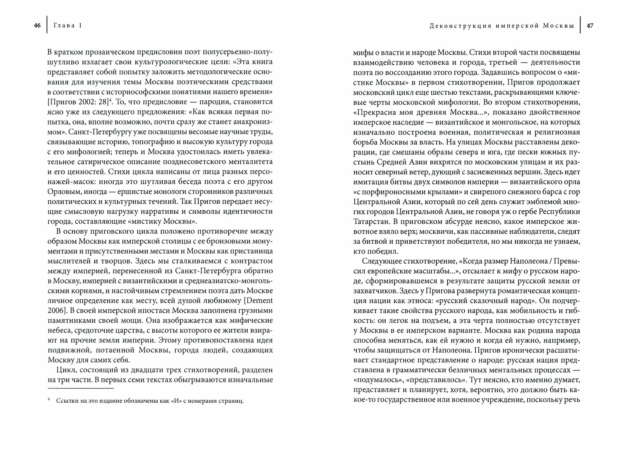 Книга не столько о постсоветской российской идентичности, сколько о постсоветской идентичности московской интеллигенции, которая продолжает воображать себя центром мира, хотя мир об этом ничего не знает. Источники в основном мкадоцентричные - современная русская художественная литература и философская публицистика (Дугин и Рыклин) и совсем немножко кино (отдельные фильмы Балабанова). Основной вывод - постсоветская "Евразия" и провинция - плод воображения москвичей, в общем, ментальная карта скорее советской эпохи, когда Москва служила не столько столицей, сколько привратником, ограничивавшим доступ к миру одной шестой его части. Сразу возникают вопросы, насколько это чтиво (Толстая, Улицкая, Проханов и пр.) воспринимается в России всерьез как источник идей и насколько оно в этом плане актуально (Пелевин). Не рассматриваются последствия трансфера в столицу людей, политиков и заграничных заимствований региональных управленцев, для которых Москва перестала быть центром мира - той же тротуарной плитки. Самоидентификация российского населения за пределами МКАД практически не рассматривается из-за специфики источников, несмотря на значительный политический и коммерческий имиджевый спрос местных элит на региональную идентичность - брендинг, новые архитектурные топосы. Литература обо всем этом есть, но не анализируется. Можно отметить также устаревший подход к анализу "мест", а не "сетей" и "потоков". Другой минус - политическая ангажированность. Какая нужда в книге о литературе перечислять общественных деятелей, убитых в 1998-2009 гг. с примечанием, что они, от Старовойтовой до Маркелова, "погибли, возможно, от рук российских органов госбезопасности"? Если в данном случае никаких доказательств автору не нужно, то как это характеризует книгу с точки зрения академизма - решать читателям.