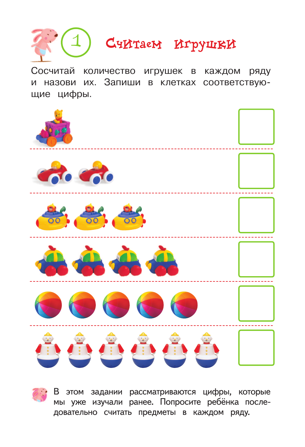 Популярная корейская методика развития интеллекта, поможет неравнодушным родителям в игровой форме обучить ребенка, дать ему необходимые знания и навыки, которые станут фундаментом его дальнейших успехов. Выполняя задания, ребенок научится считать и писать числа в пределах 20, соотносить число и количество предметов; будет соединять точки от 1 до 20, сравнивать количество предметов в группах; познакомится с понятиями "на 1 больше", "на 1 меньше", знаками "+" и "-"; сможет решить примеры с опорой на картинки и самостоятельно определить время по часам. Это поможет ему также развить внимание, мышление, логику, моторику. Замечательные добрые картинки повысят интерес ребенка к занятиям, а доступность заданий и их постепенное усложнение поможет ему почувствовать себя уверенным в своих знания.