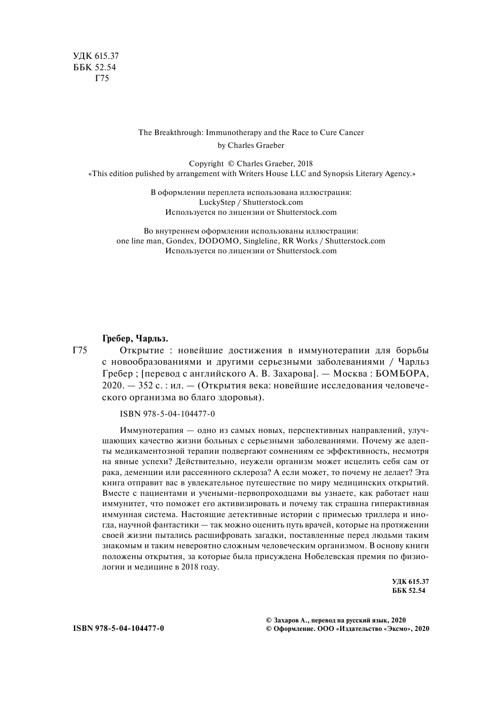 Открытие. Новейшие достижения в иммунотерапии для борьбы с новообразованиями (Гребер Чарльз); ООО "Издательство "Эксмо", 2020