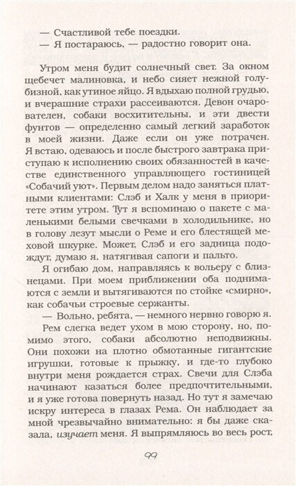Однако вряд ли Чарли удастся провести тихие выходные - Джез внезапно уезжает, и гостье придется присматривать за гостиницей, обращаться за помощью к местному ветеринару, синеглазому и надменному Кэлу, принимать новых постояльцев - например, глухого дога, владелец которого красив как древнегреческий бог, но, увы, помолвлен, или невероятно породистого сеттера, которого привезла хозяйка - вылитая Круэлла Де Виль.