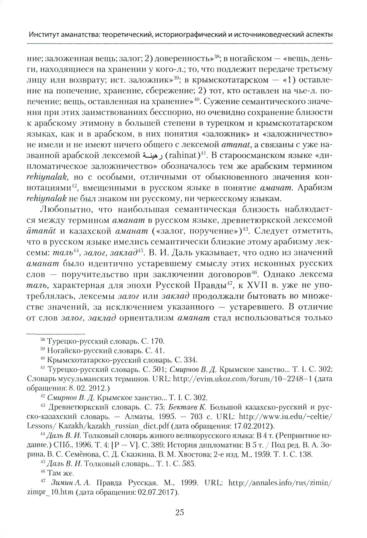 Предлагается анализ мирных связей Московского царства и Российской империи с черкесскими политиями - небольшими евразийскими государствами - через исследование их посольско-дипломатического аспекта, фокусировавшегося в значительной мере в институте аманатства; сформулировано определение института аманатства с учетом его генетической связи со средневековым институтом дипломатического заложничества и тех трансформаций, которые он претерпел в течение 300 лет.