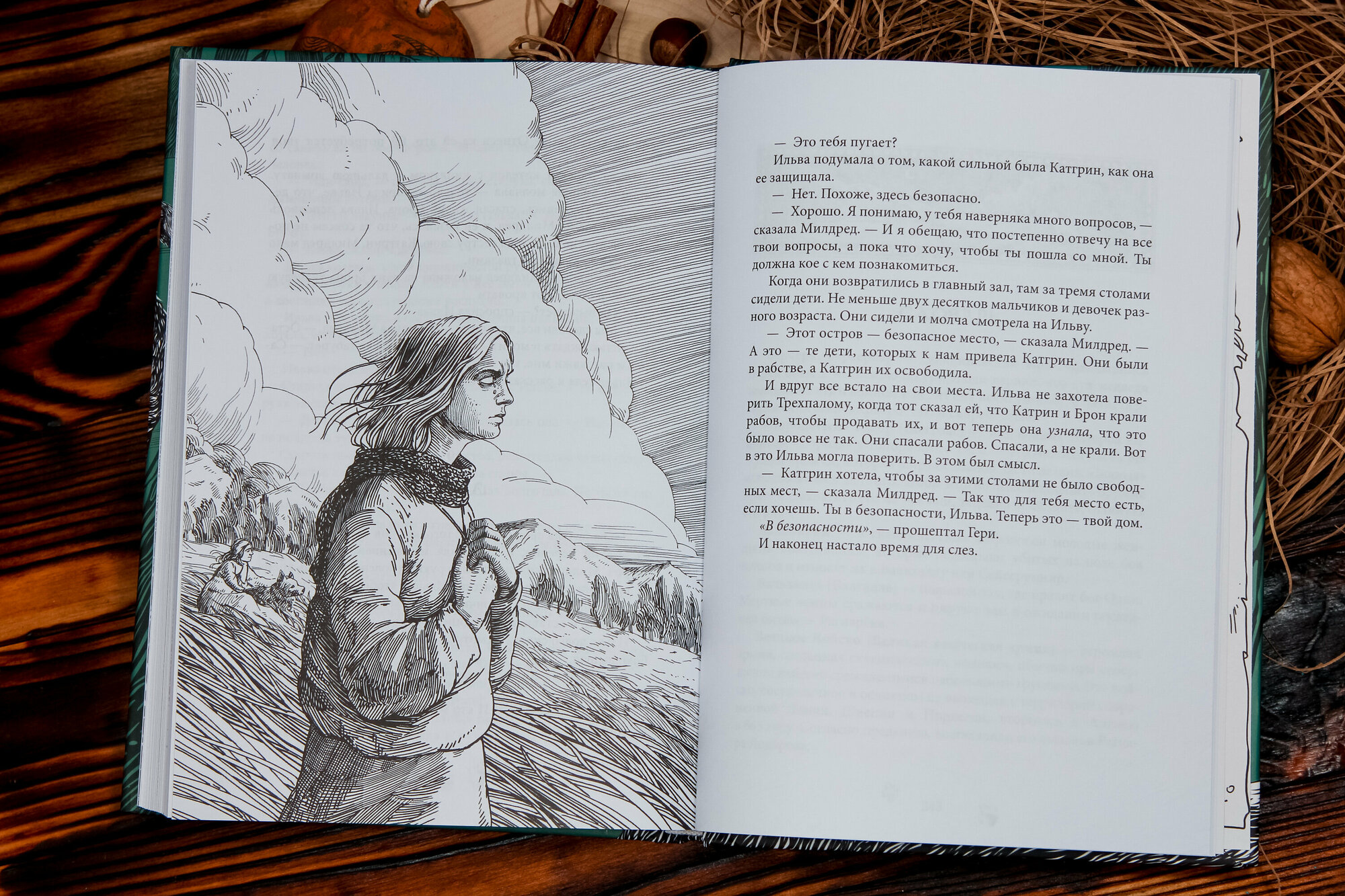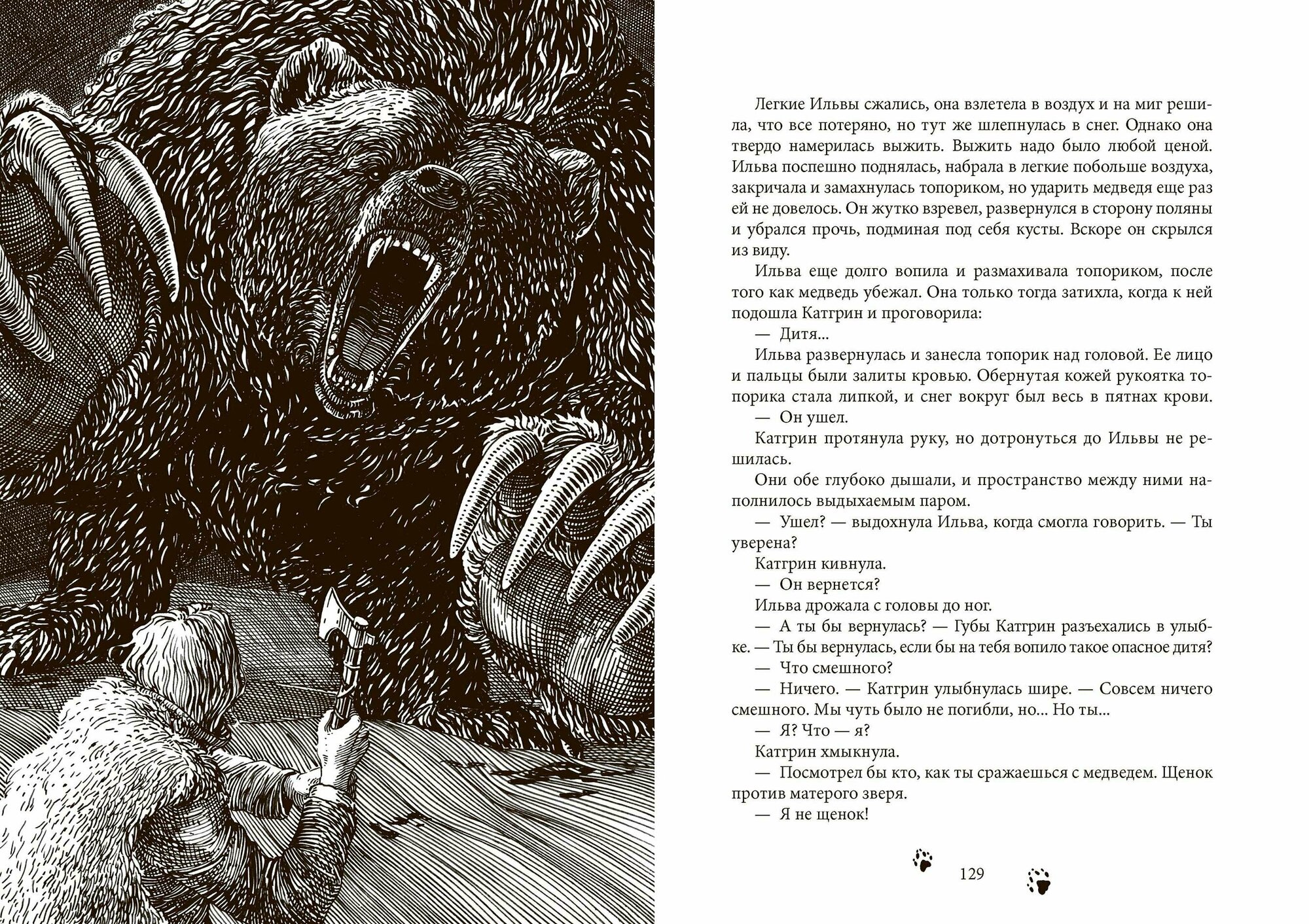 Эта книжка похожа на хороший фентезийный боевик, сюжет затягивает с первой страницы. Потеря девочки, ее взросление, исследование странного мира, который наполнен северными суевериями и действительно существующими фантастическими созданиями. Главы здесь короткие, но оторваться невозможно, эту тяжелую по объему книжку прочитали за три вечера и, скорее всего, будем перечитывать еще. Кроме текста здесь еще очень крутые иллюстрации, фотки нескольких прилагаю.