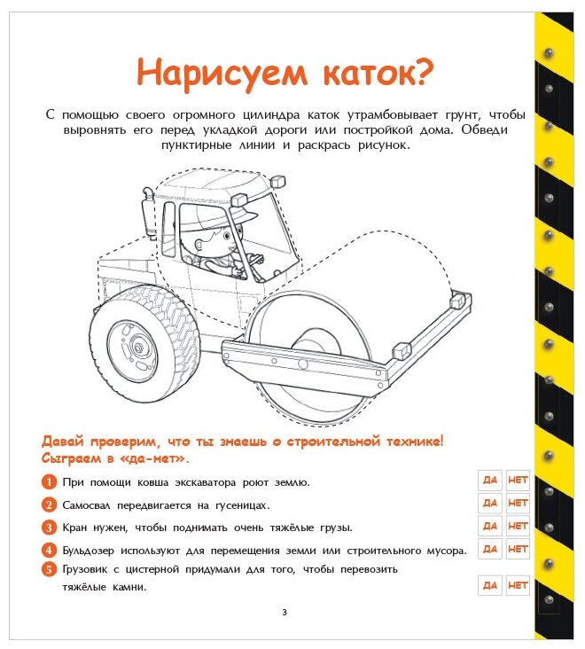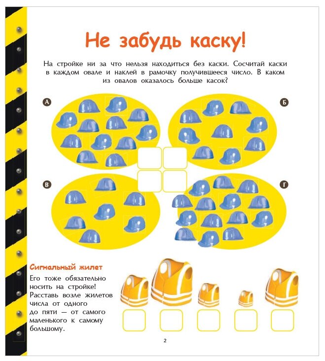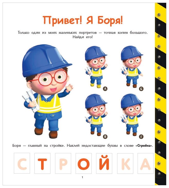 Одна из самых наших любимых с сыном книжных серий, собрали уже почти все книги, хотя ребёнку ещё только 2 года. Делаем пока те задания, какие можем по возрасту, сыну, например, очень нравится показывать, то, что я прошу (иллюстрвции живые, с большим количеством деталей - восторг!), подбирать нужные фишки домино и водить пальчиком по нарисованным лабиринтам, приклеивать на контур нужную машину. Отдельный восторг - внимание к технике безопасности, на стройке все в жилетах и касках. Бумага и полиграфия на высшем уровне, странички не истрепались, хоть мы и листаем книгу каждый день в течение полугода, а, значит, задания типа "Раскрась", " Соедини точки", "Составь из букв", "Найди отличия" ещё обязательно дождутся своего часа.