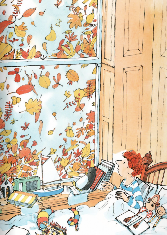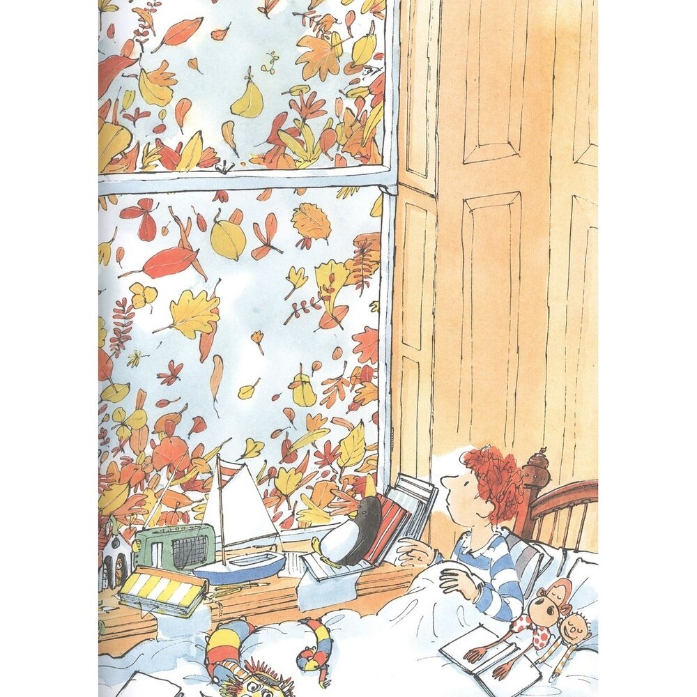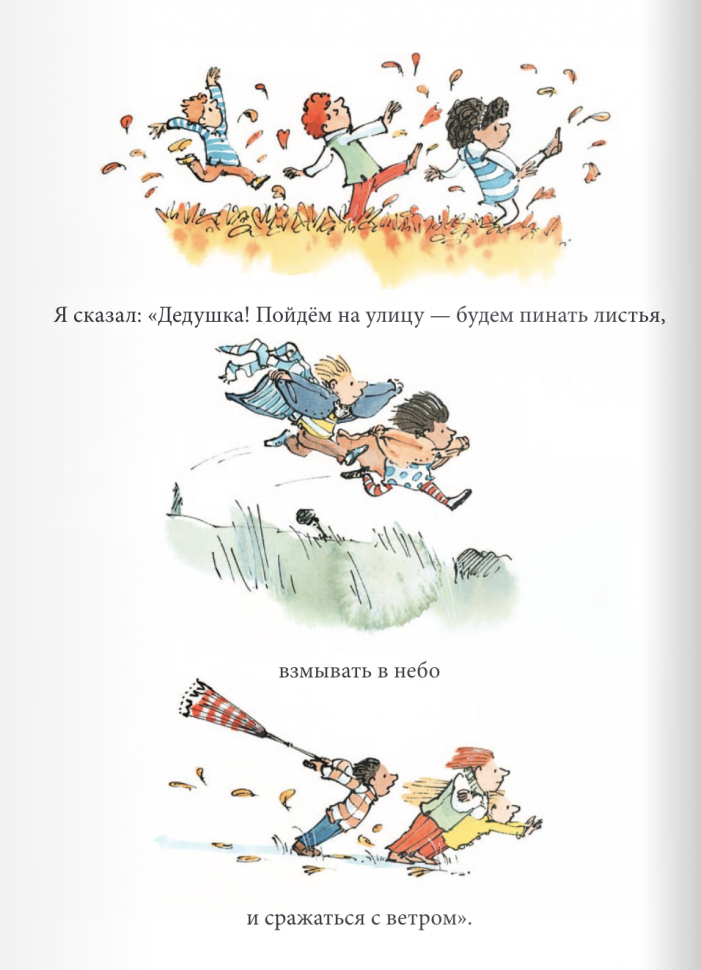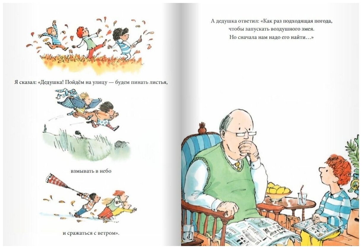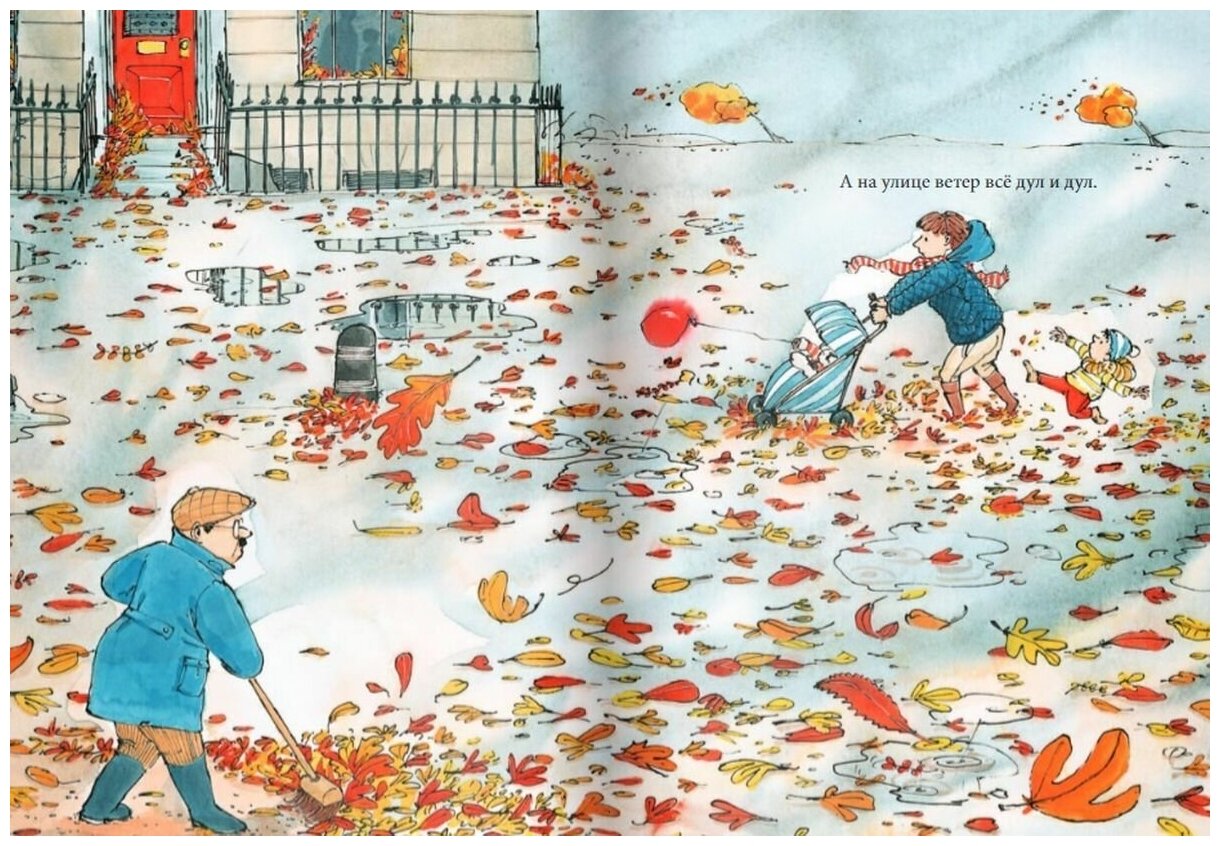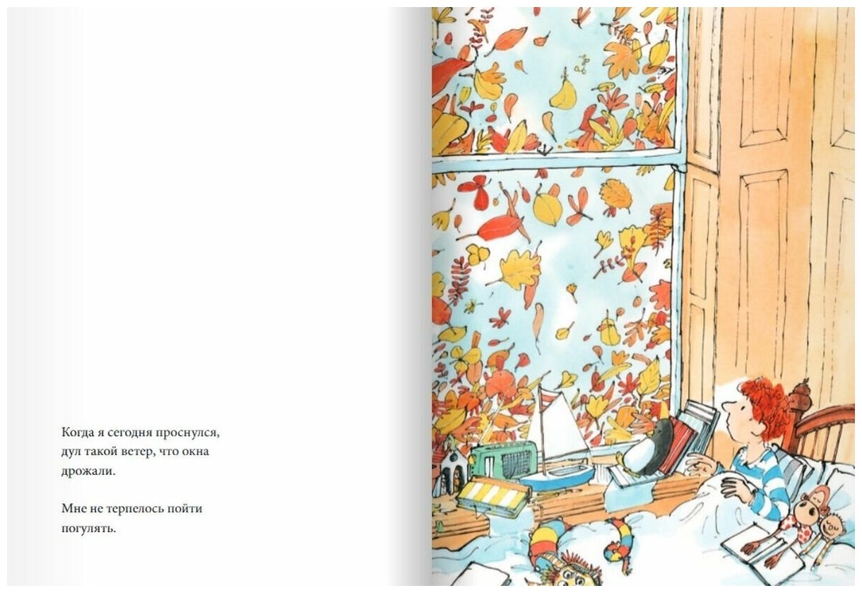 Завершающая книга Сэма Ашера о погоде! С изумительными иллюстрациями, такими живыми и чудесными! Любим эту серию) Ветер, листья, осень! Но знаете , что в этой книге вы найдете отголоски всех остальных книг, про снег, дождь, солнце, мальчик вспоминает вместе с дедушкой, то чем они занимались, и какие приключения у них были. Прекрасная серия книг, для всех и деток и взрослым она нравится, в нашей семье так точно!